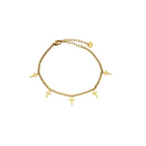 Ατσάλινο Βράχιολι Με Κρεμαστούς Σταυρούς – Χρυσό