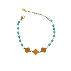 Βραχιόλι Ανοξείδωτο Ατσάλι με Τυρκουάζ Χάντρες και Τετράφυλλα – Χρυσό