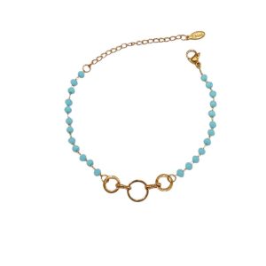 Βραχιόλι Ανοξείδωτο Ατσάλι με Τυρκουάζ Χάντρες και Κρίκους – Χρυσό