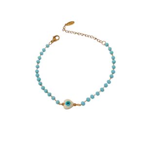 Βραχιόλι Ανοξείδωτο Ατσάλι με Τυρκουάζ Χάντρες και Ματάκι Καρδιά – Χρυσό