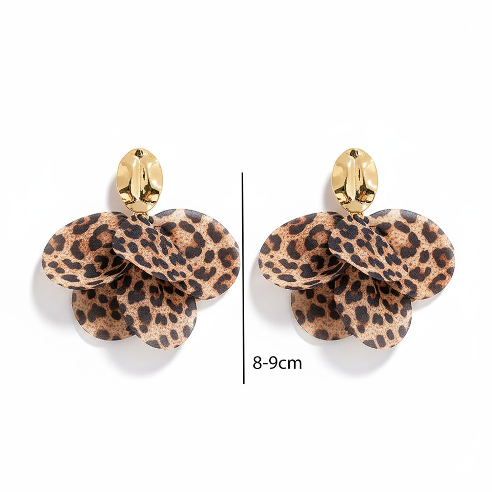 Εντυπωσιακά σκουλαρίκια με ανάλαφρα υφασμάτινα πέταλα σε λεοπάρ μοτίβο, δημιουργώντας ένα μοναδικό layered εφέ με όμορφη κίνηση. Η χρυσαφί μεταλλική βάση προσθέτει κομψότητα και λάμψη, ενώ η ατσάλινη βελόνα εξασφαλίζει άνετη και ασφαλή εφαρμογή. Ιδανικά για όσες αναζητούν ένα statement κομμάτι που χαρίζει χαρακτήρα σε casual αλλά και πιο elegant outfits.