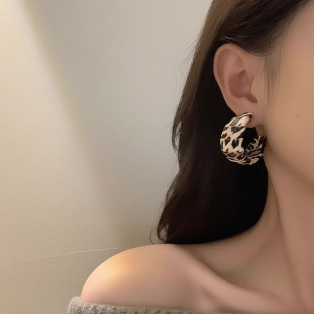 Μοντέρνοι κρίκοι με ανοιχτόχρωμο animal print σε μπεζ και μαύρους τόνους, που χαρίζουν μια φωτεινή και κομψή αισθητική. Η απαλή, ανάγλυφη υφή τους δίνει ιδιαίτερο χαρακτήρα και κάνει το μοτίβο να ξεχωρίζει χωρίς υπερβολές.Με διάμετρο περίπου 3,5 cm, είναι ελαφριά, άνετα στην εφαρμογή και ιδανικά για να ολοκληρώνουν κάθε look με μια stylish, καθημερινή πινελιά. Ένα κόσμημα που συνδυάζει θηλυκότητα και μοντέρνο ύφος.