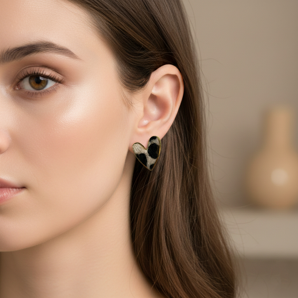 Μοντέρνα σκουλαρίκια από ανοξείδωτο ατσάλι σε σχήμα καρδιάς με animal print σχέδιο. Ο τολμηρός τους σχεδιασμός συνδυάζει το ρομαντικό στοιχείο της καρδιάς με τη δυναμική αισθητική του animal print, δημιουργώντας ένα στυλ που ξεχωρίζει. Ανθεκτικά, υποαλλεργικά και ελαφριά, είναι ιδανικά για να προσθέσουν μια fashionable πινελιά σε κάθε σας εμφάνιση.