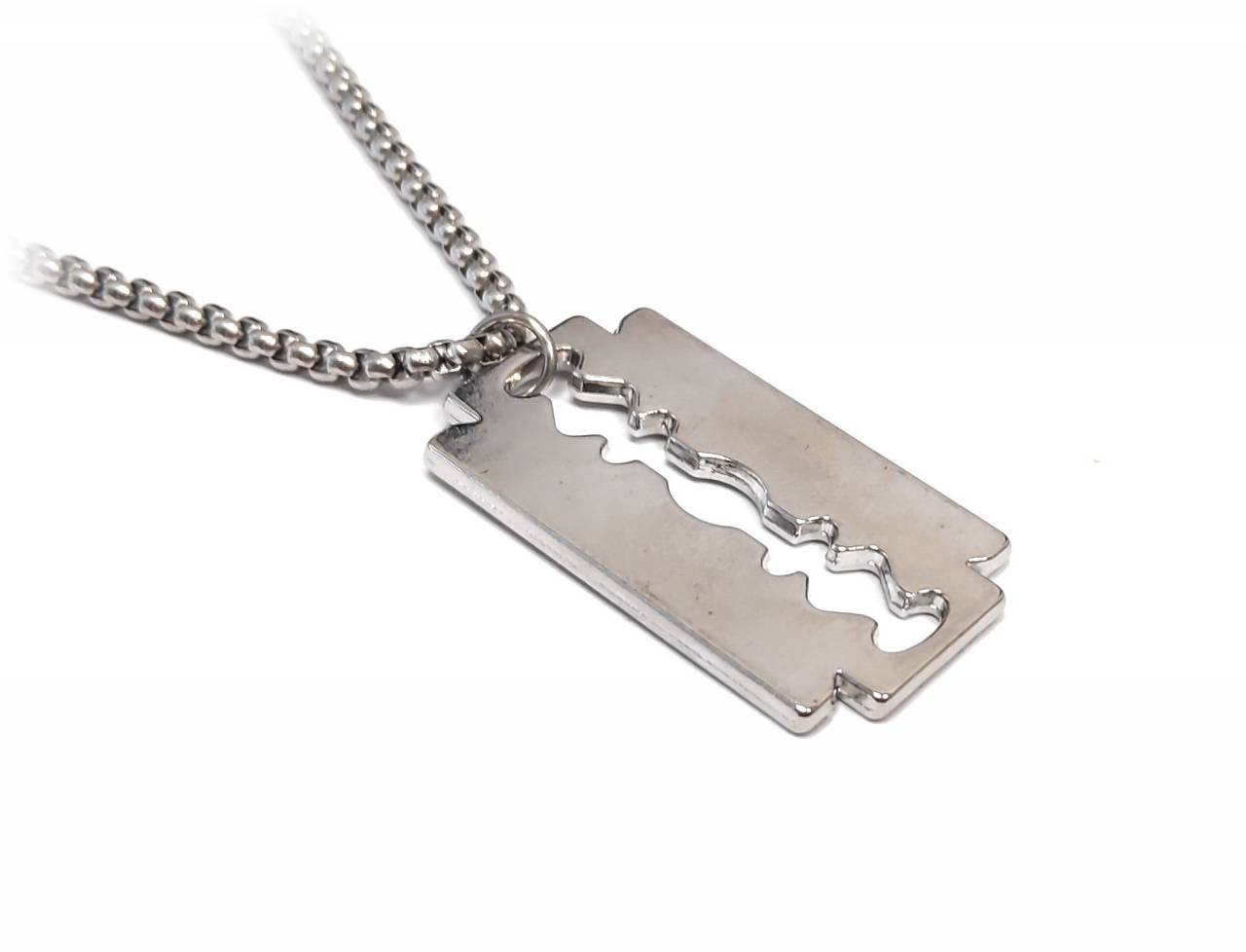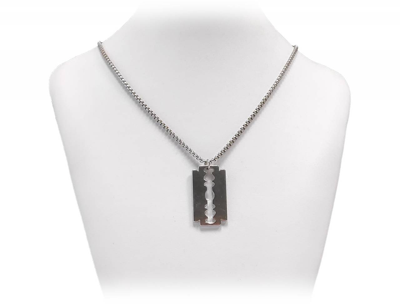 Αντρικό Κολιέ Ατσάλι 304, αλυσίδα με πλακέτα ξυράφι σε χρώμα Ασημί, Μήκος 70cm, Πλάτος 0,3cm