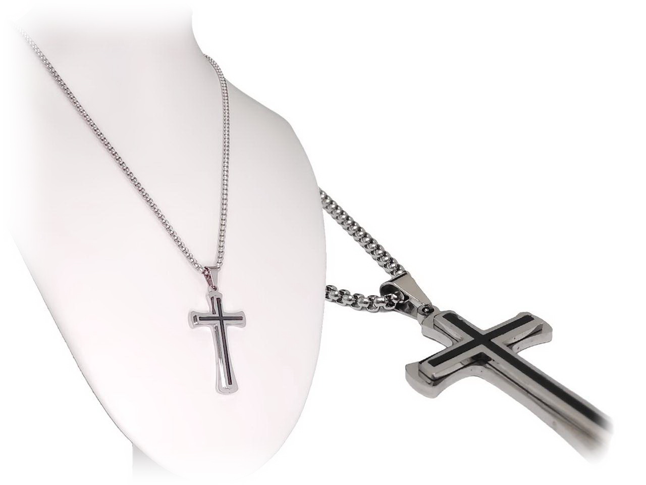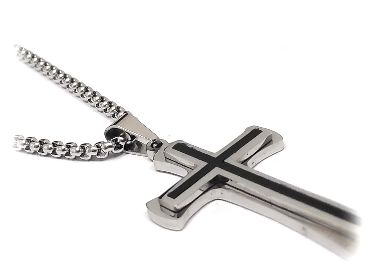 Αντρικό Κολιέ Ατσάλι 304, αλυσίδα με σταυρό σε χρώμα Ασημί, Μήκος 50cm, Πλάτος 0,2cm, Πάχος 3mm