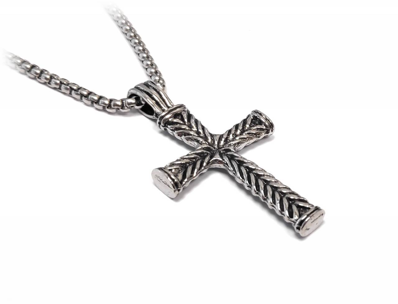 Αντρικό Κολιέ Ατσάλι 304, αλυσίδα με σταυρό σε χρώμα Ασημί, Μήκος 70cm, Πλάτος 0,3cm