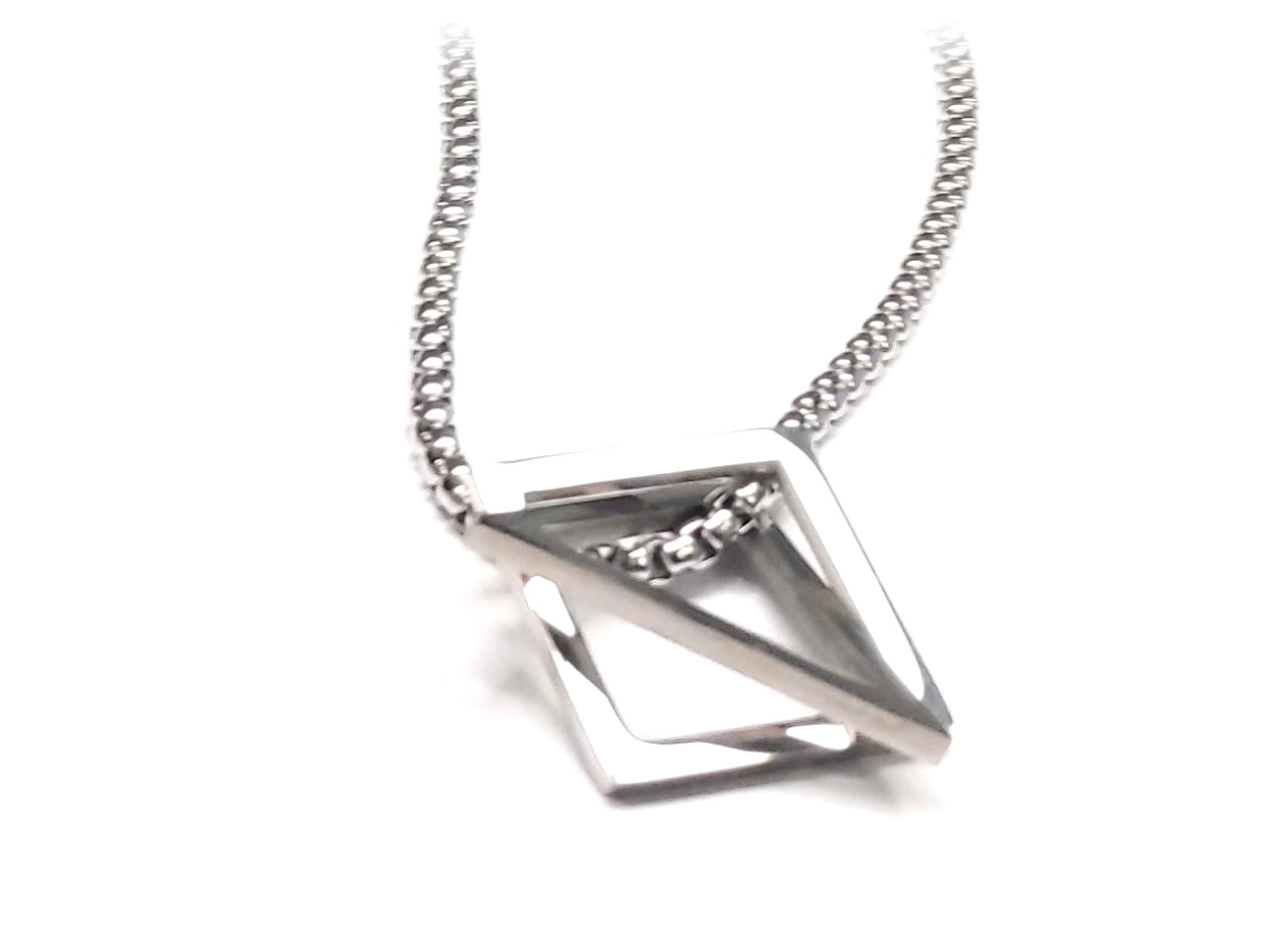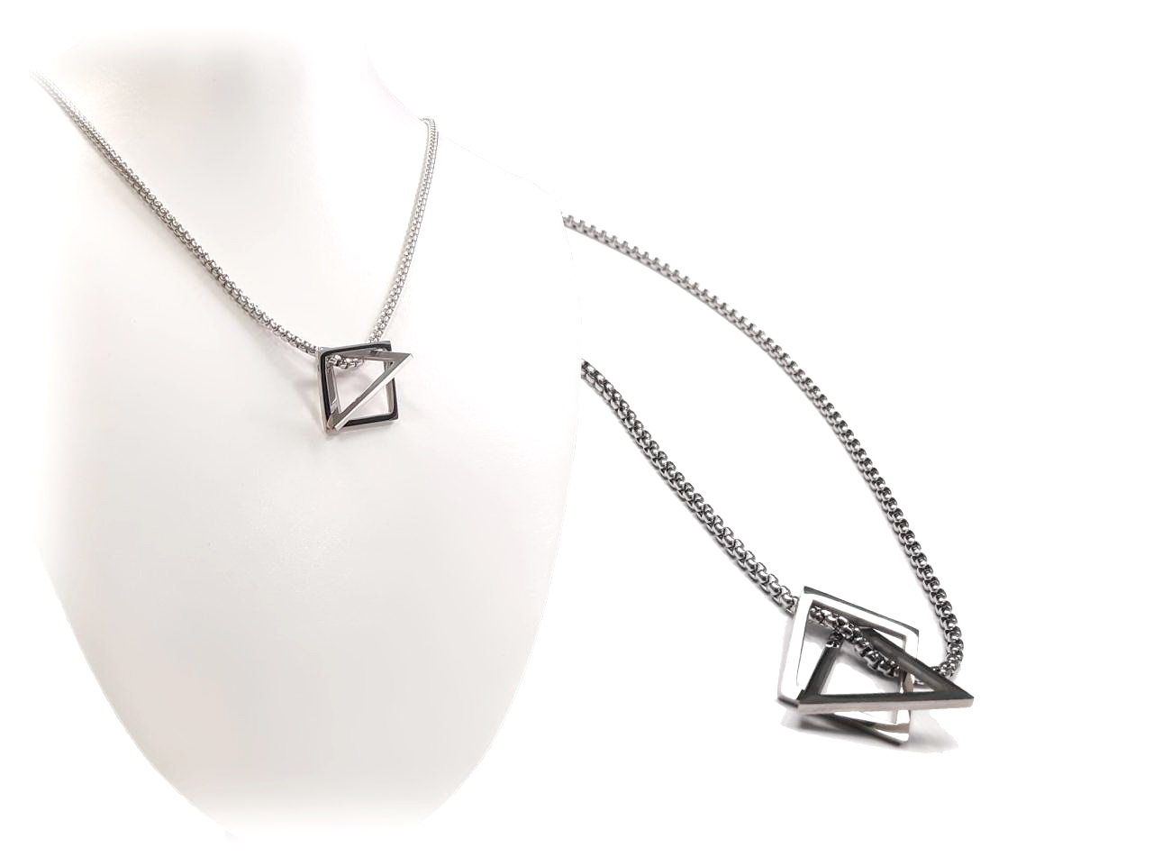 Αντρικό Κολιέ Ατσάλι 304, αλυσίδα με τρίγωνο και τετράγωνο σε χρώμα Ασημί, Μήκος 70cm, Πλάτος 0,3cm