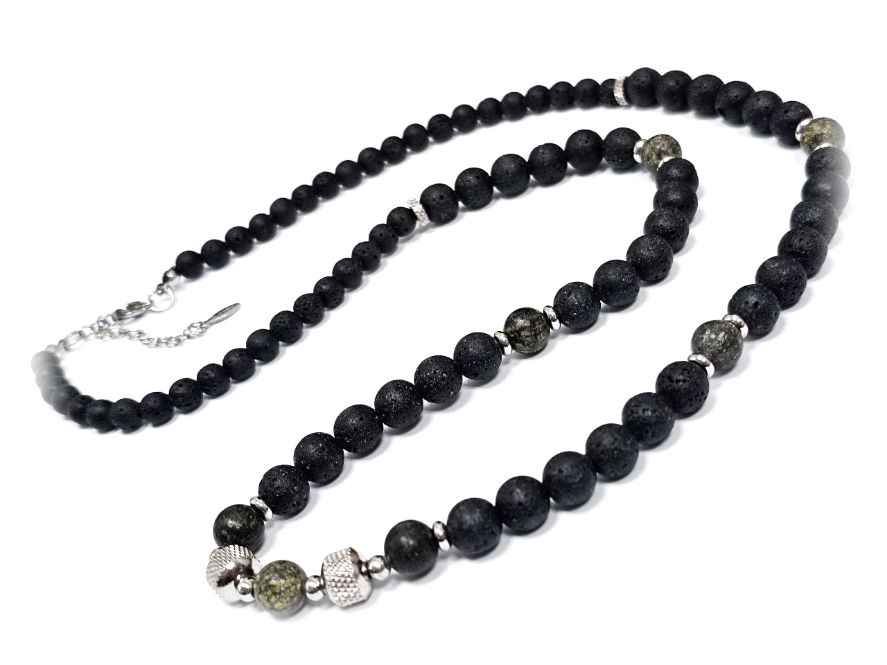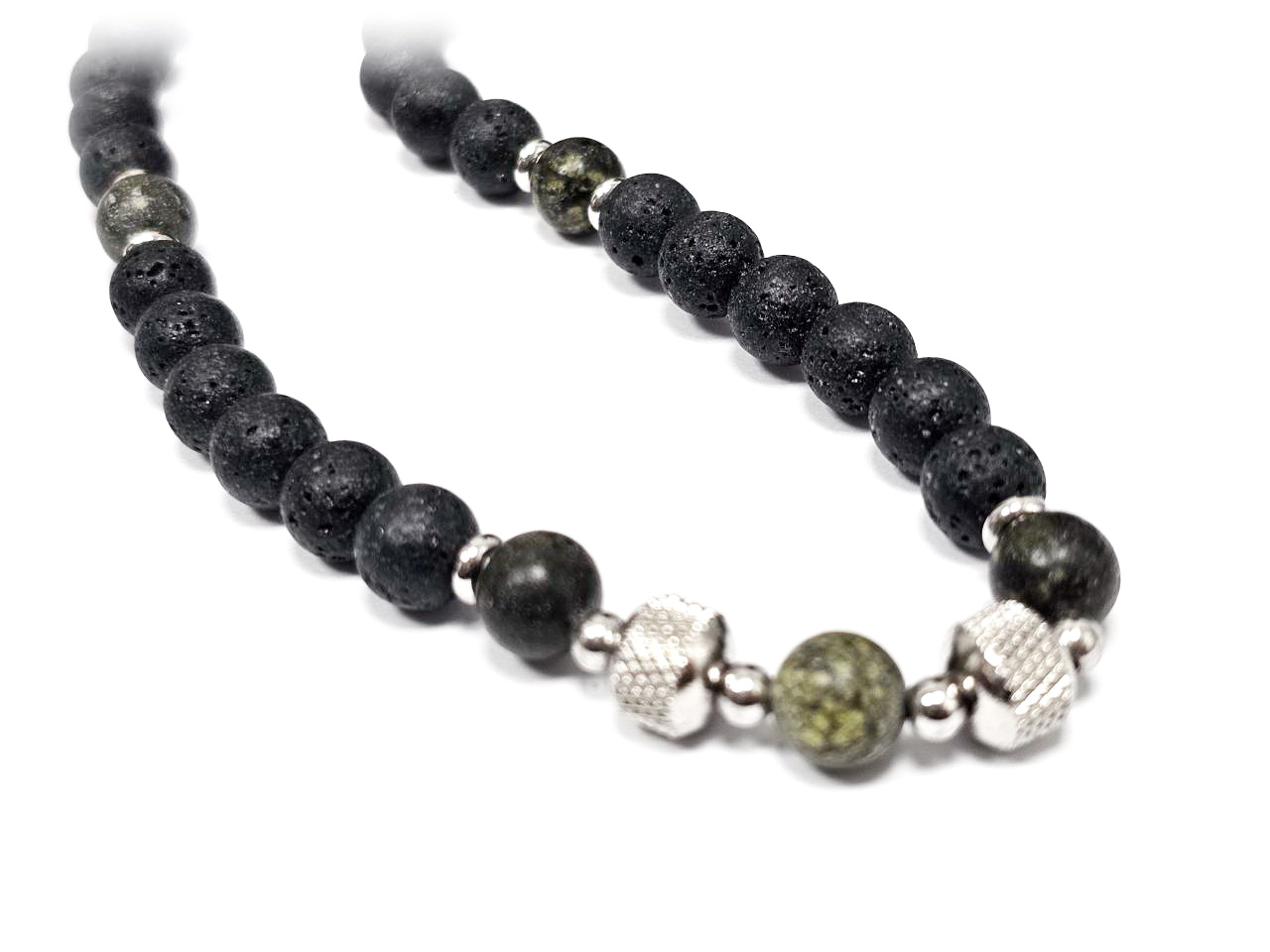 Αντρικό Κολιέ Πέτρα ατσάλι 304, αλυσίδα με λάβα και διάφορες πέτρες σε χρώμα Ασημί