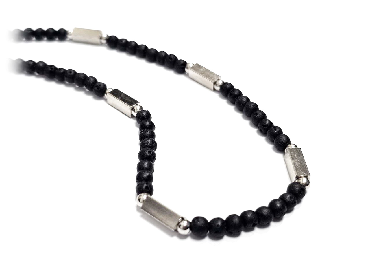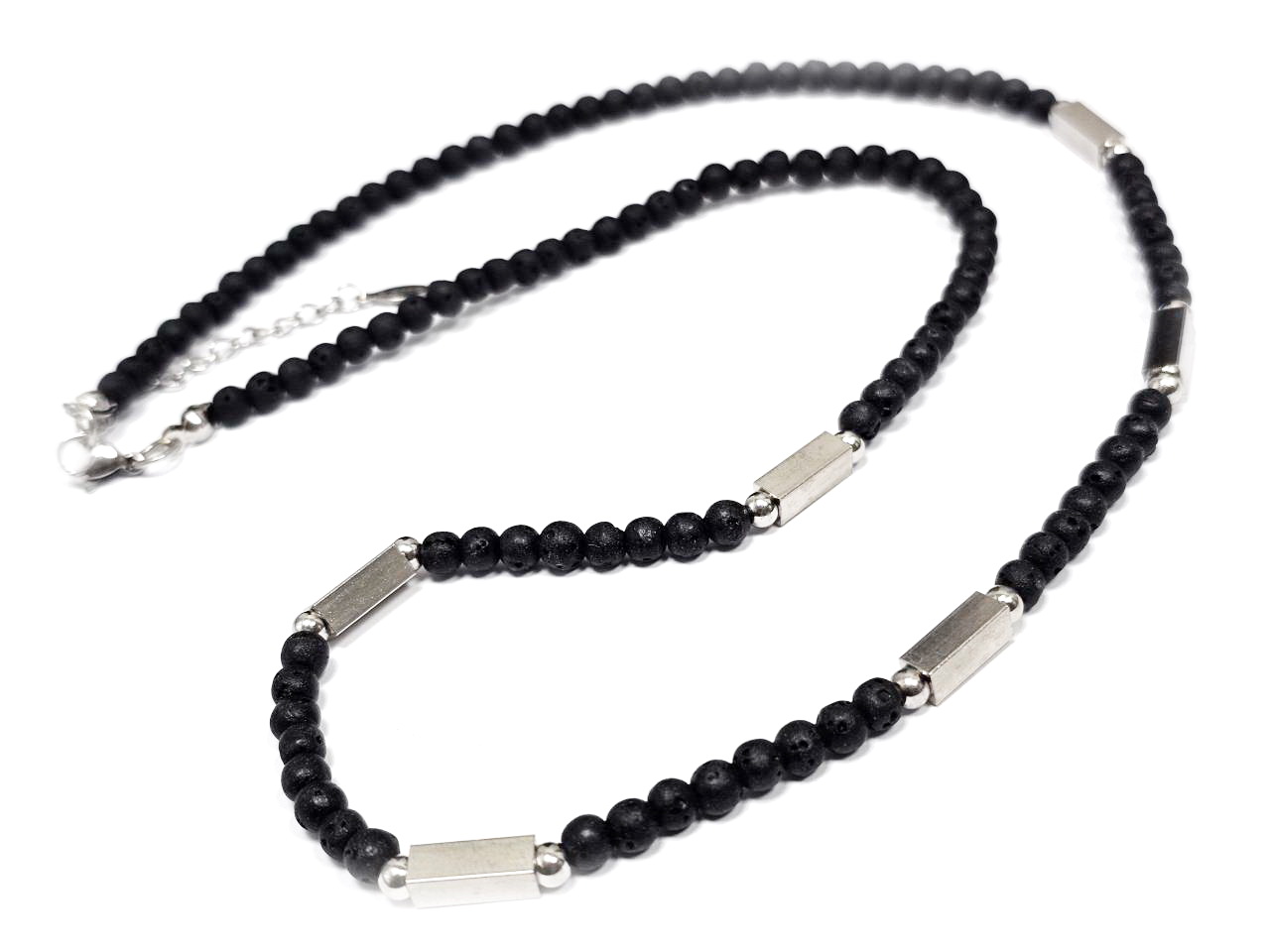 Αντρικό Κολιέ Πέτρα ατσάλι 304, αλυσίδα με λάβα σε χρώμα Ασημί