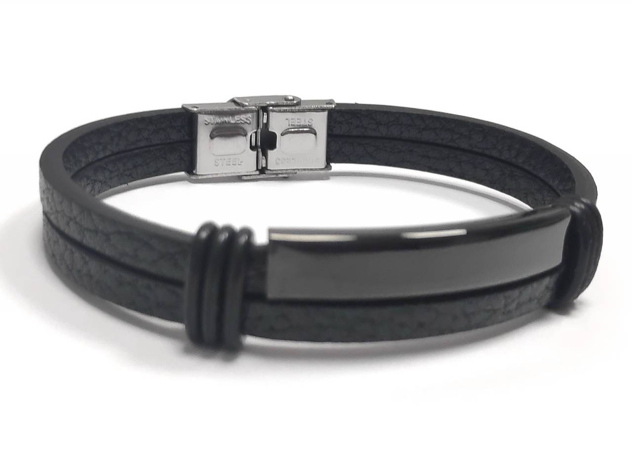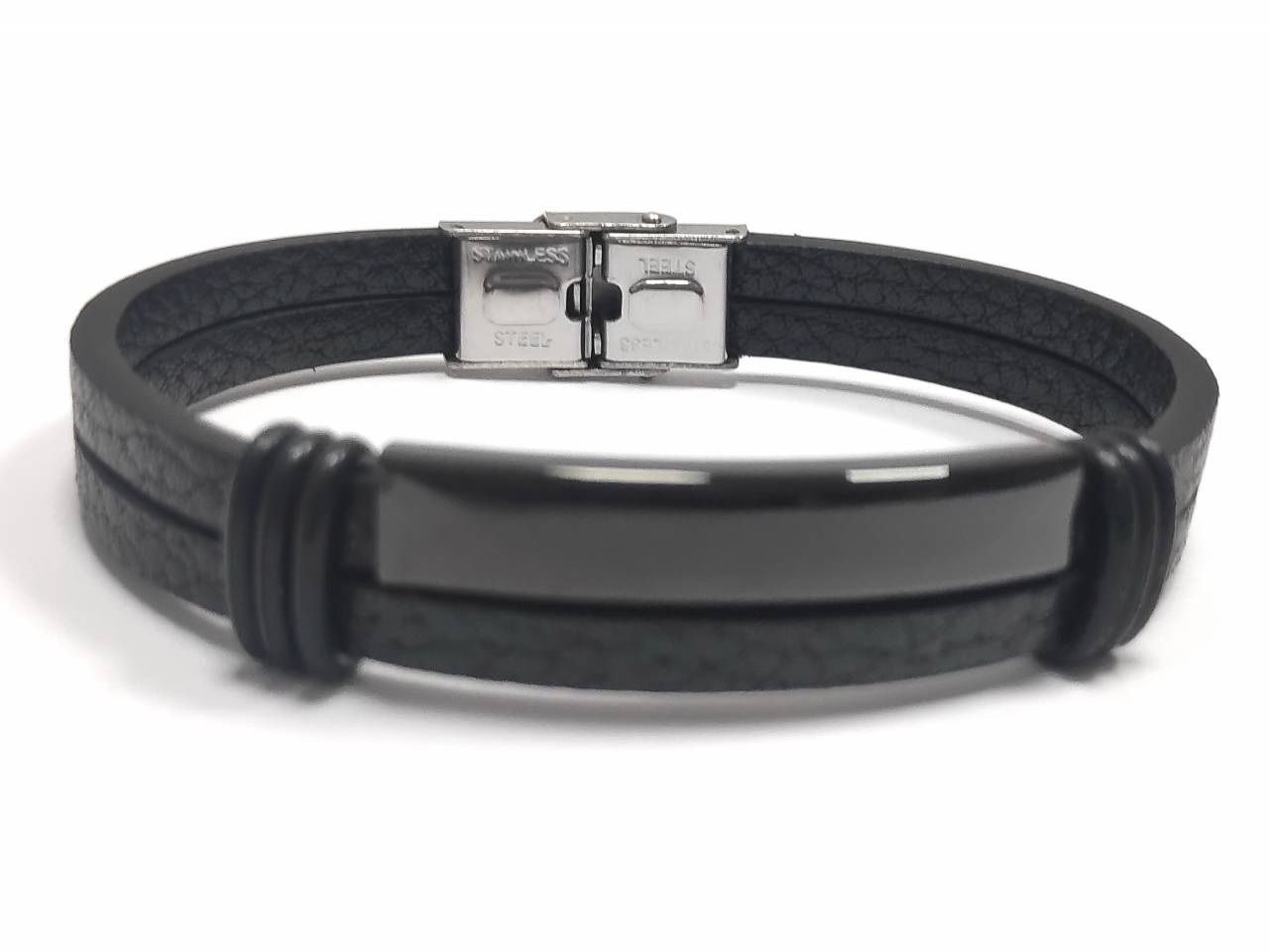 Αντρικό Βραχιόλι Ατσάλι 304, δέρμα PU σε χρώμα Μαύρο