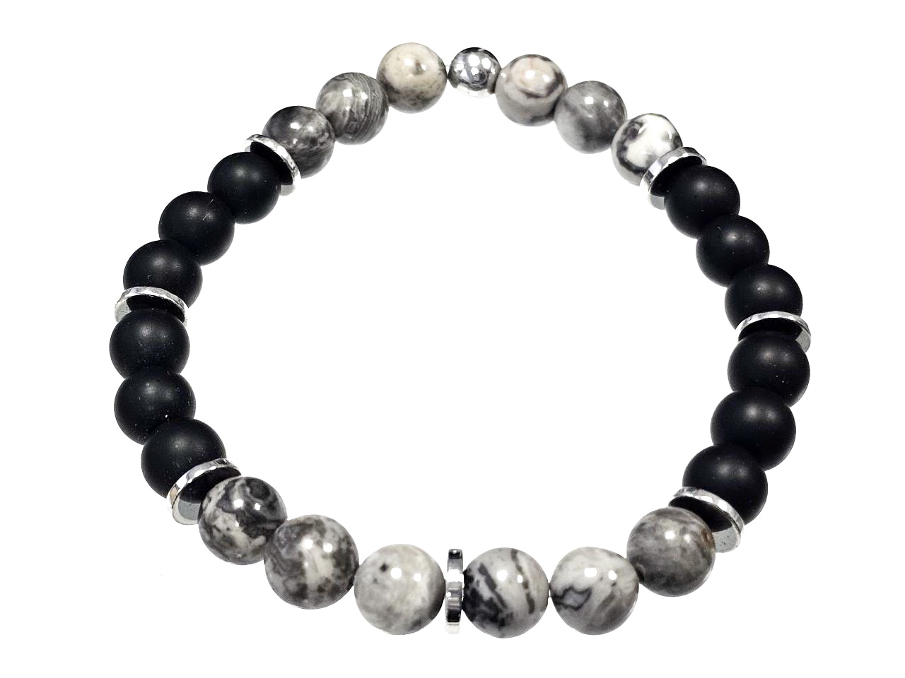 Αντρικό Βραχιόλι Πέτρα ελαστικό 8mm, με ημιπολύτιμες πέτρες και στοιχεία από αιματίτη