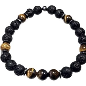 Αντρικό Βραχιόλι Πέτρα ελαστικό 8mm, με ημιπολύτιμες πέτρες και στοιχεία από αιματίτη