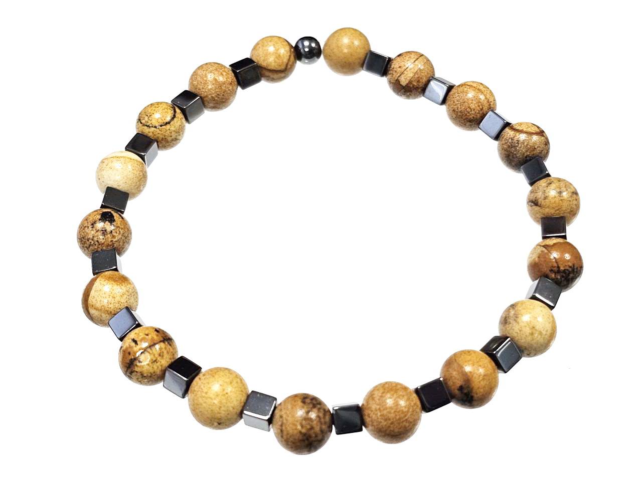 Αντρικό Βραχιόλι Πέτρα ελαστικό 8mm, με ημιπολύτιμες πέτρες και στοιχεία από αιματίτη