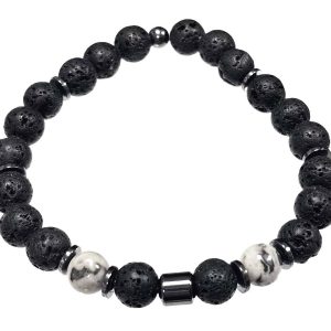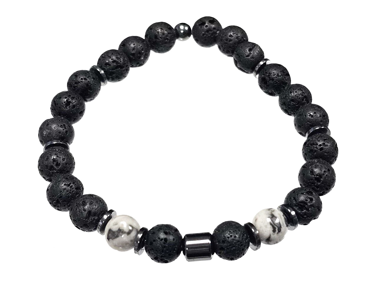 Αντρικό Βραχιόλι Πέτρα ελαστικό 8mm, με ημιπολύτιμες πέτρες και στοιχεία από αιματίτη