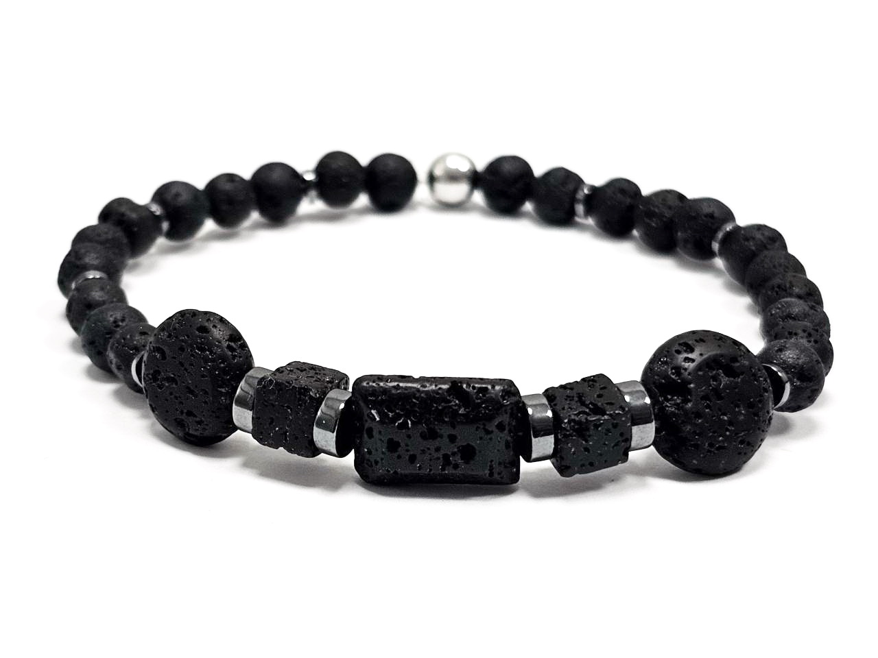 Αντρικό Βραχιόλι Πέτρα ελαστικό, με λάβα και στοιχεία από αιματίτη