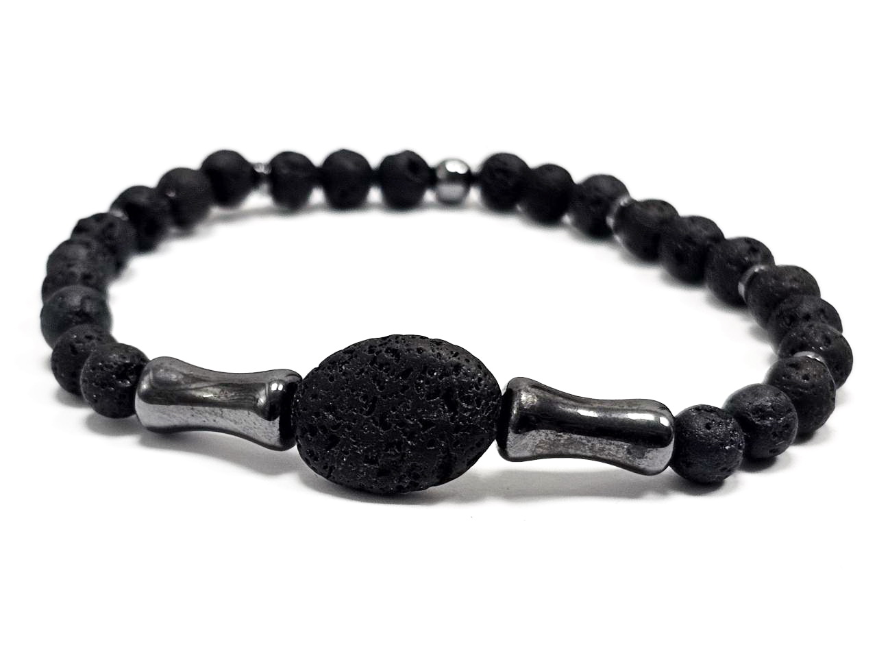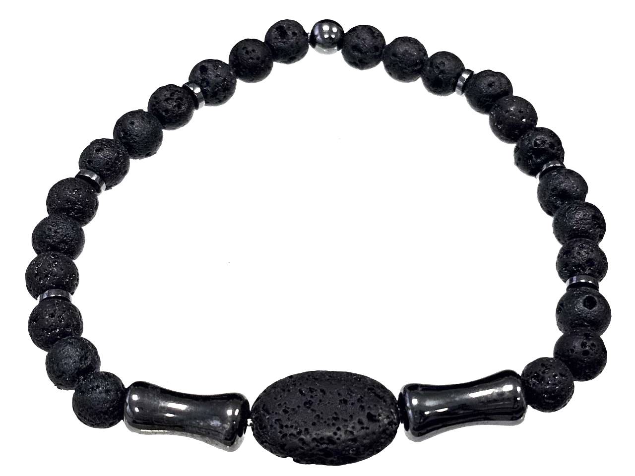 Αντρικό Βραχιόλι Πέτρα ελαστικό, με λάβα και στοιχεία από αιματίτη