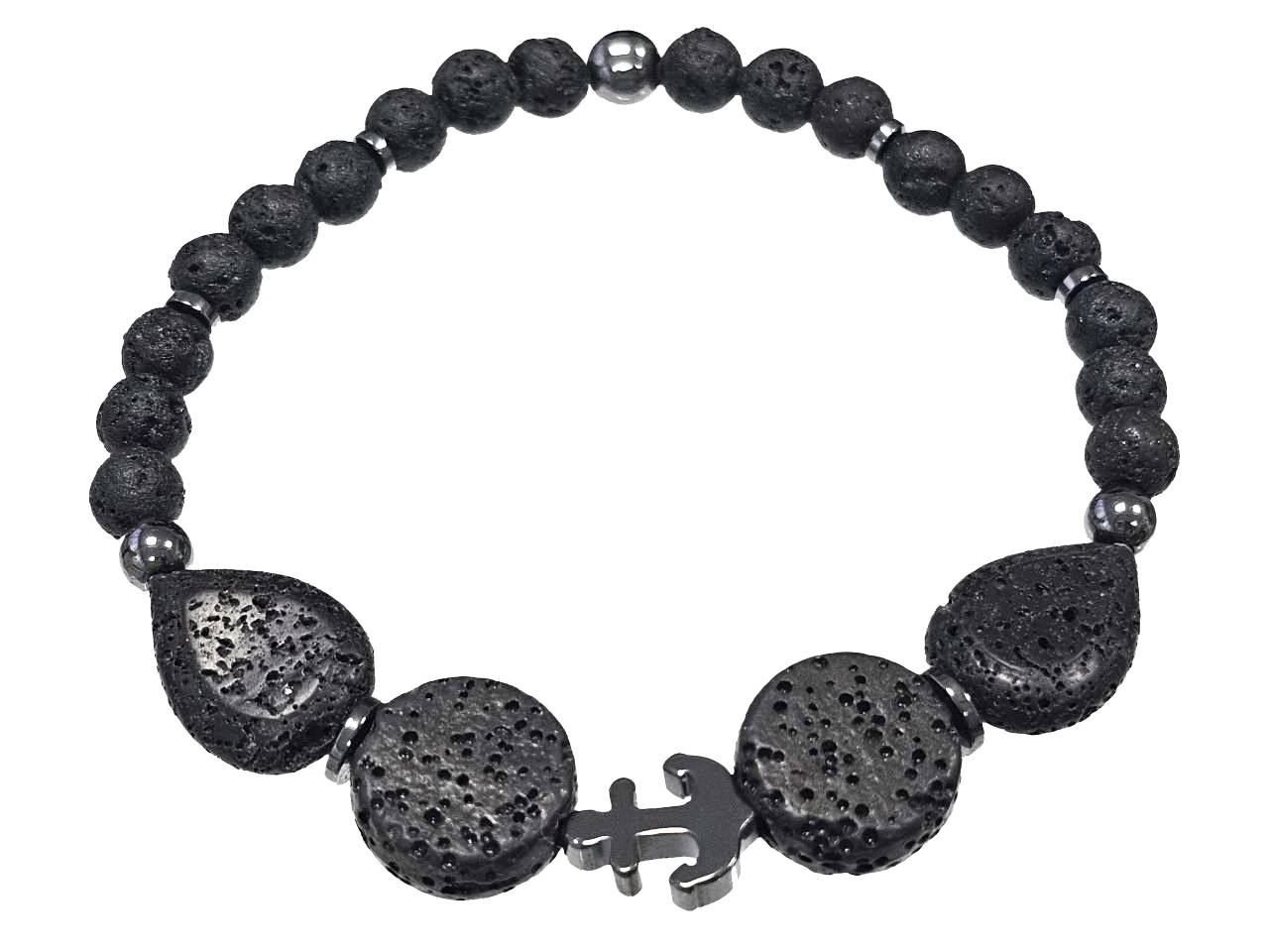 Αντρικό Βραχιόλι Πέτρα ελαστικό, με λάβα και στοιχεία από αιματίτη