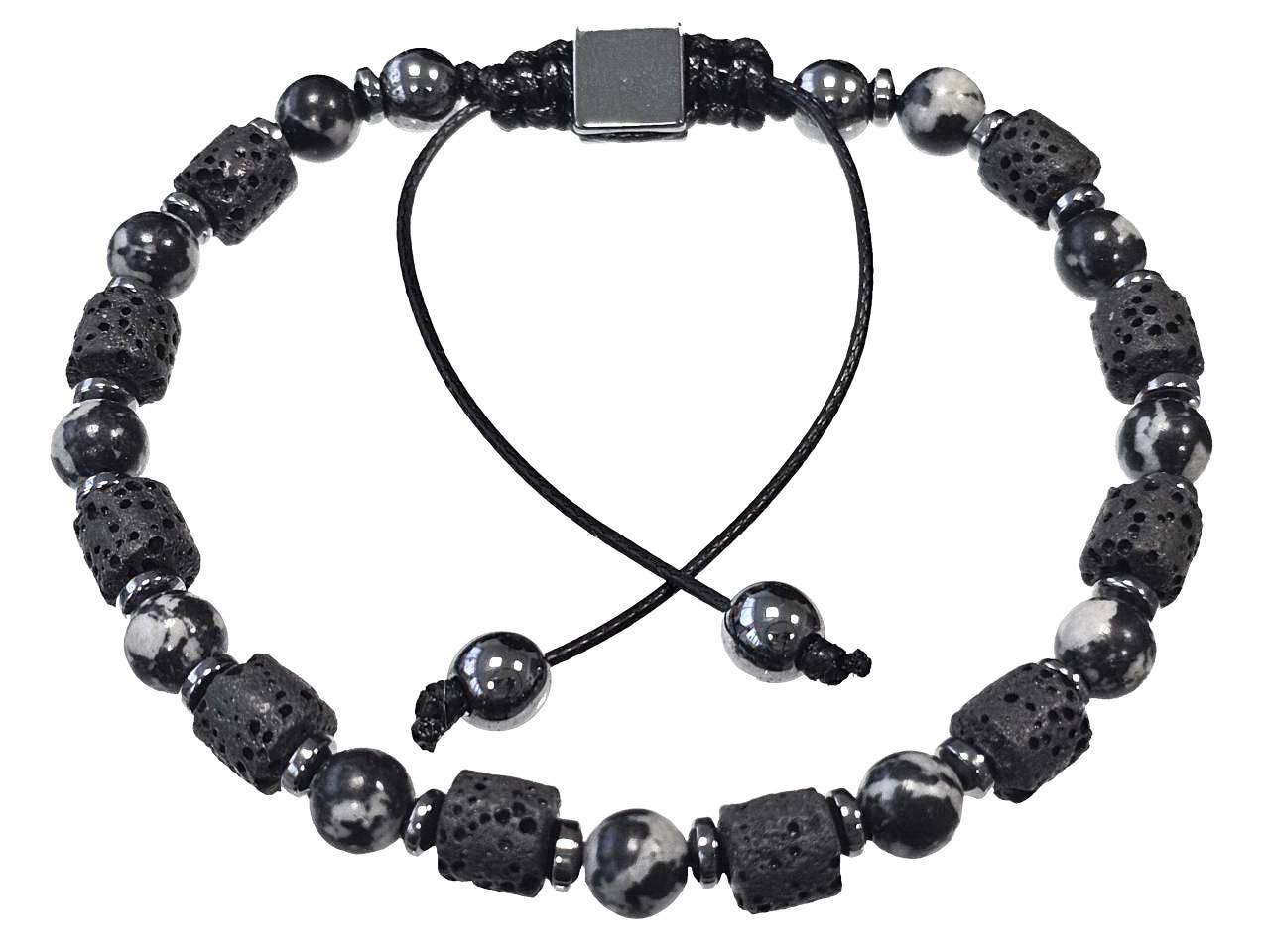 Αντρικό Βραχιόλι Πέτρα μακραμέ 6mm, με ημιπολύτιμες πέτρες και στοιχεία από αιματίτη