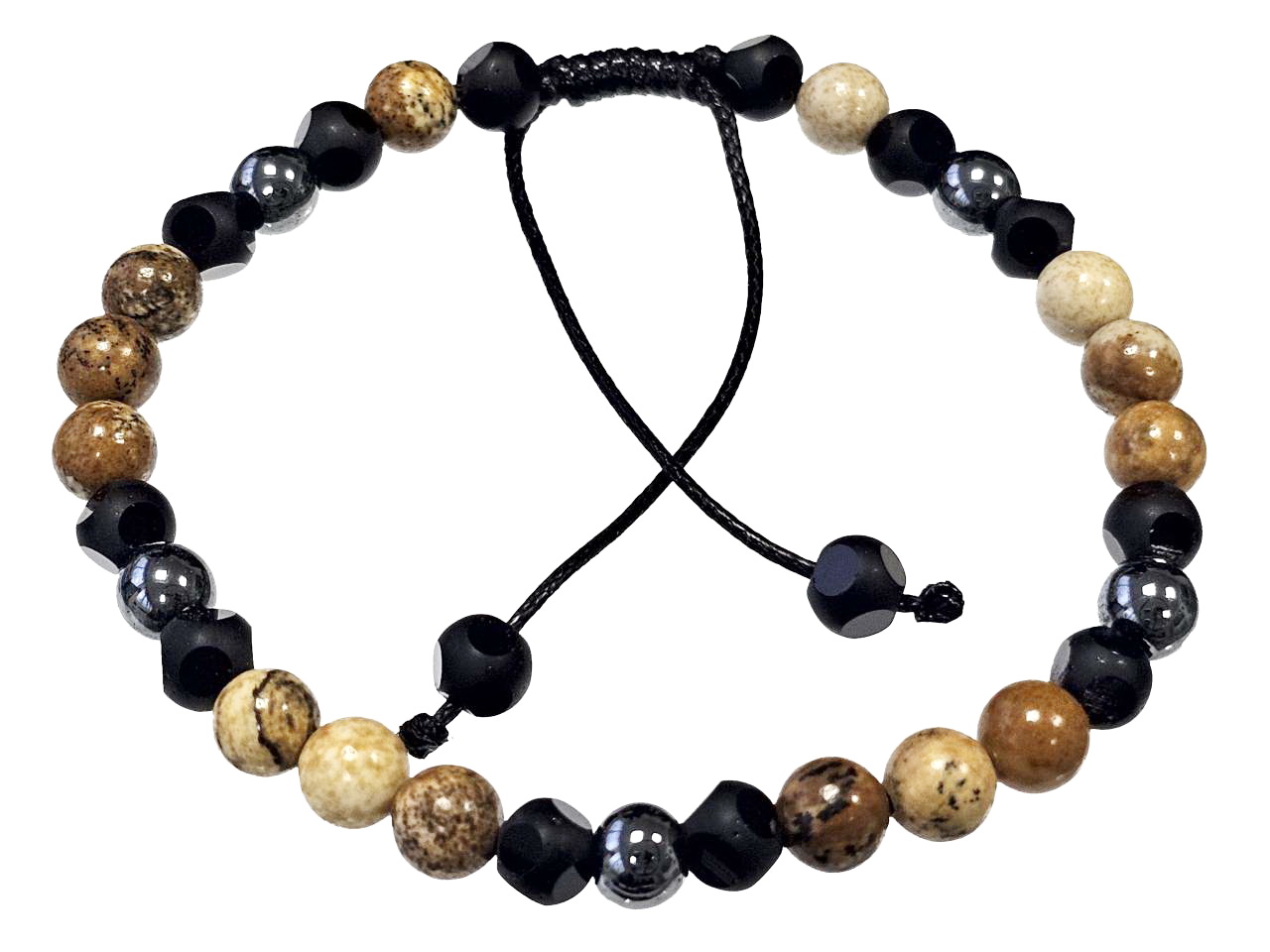 Αντρικό Βραχιόλι Πέτρα μακραμέ 6mm, με ημιπολύτιμες πέτρες και στοιχεία από αιματίτη