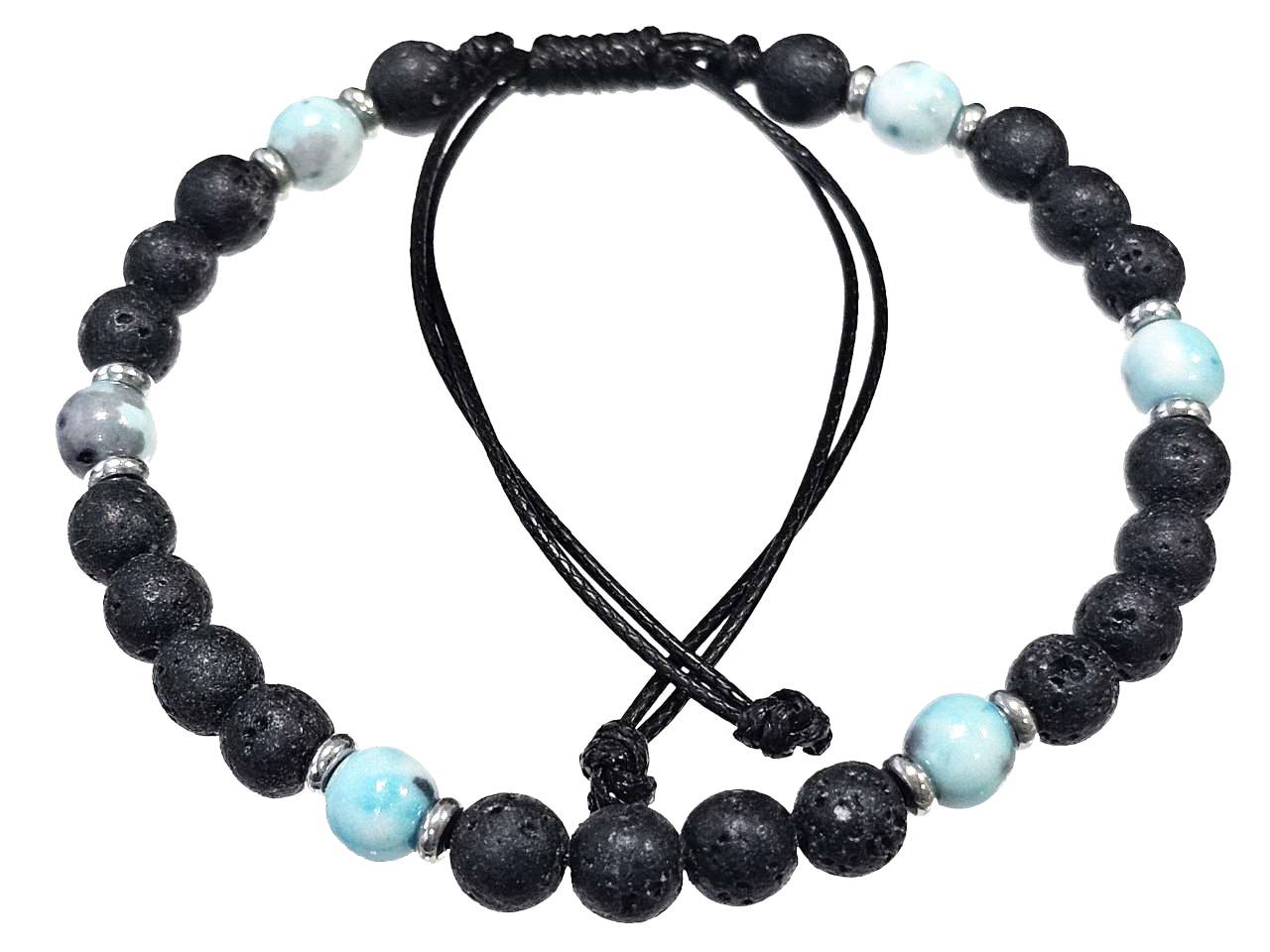 Αντρικό Βραχιόλι Πέτρα μακραμέ 6mm, με ημιπολύτιμες πέτρες και στοιχεία από ατσάλι