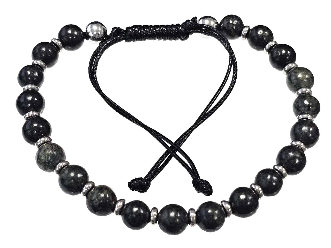 Αντρικό Βραχιόλι Πέτρα μακραμέ 6mm, με ημιπολύτιμες πέτρες και στοιχεία από ατσάλι