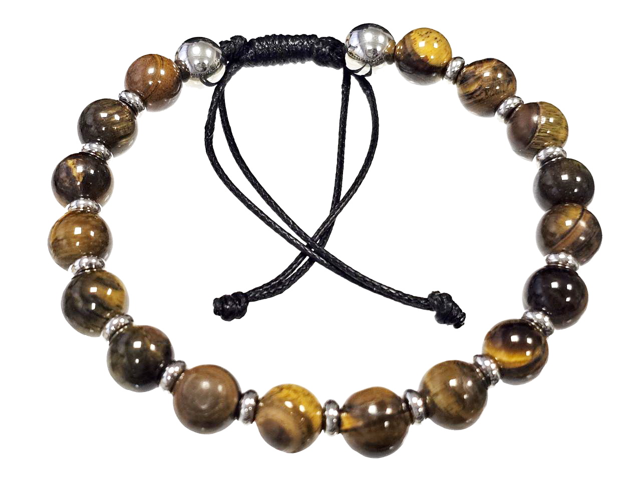Αντρικό Βραχιόλι Πέτρα μακραμέ 8mm, με ημιπολύτιμες πέτρες και στοιχεία από ατσάλι
