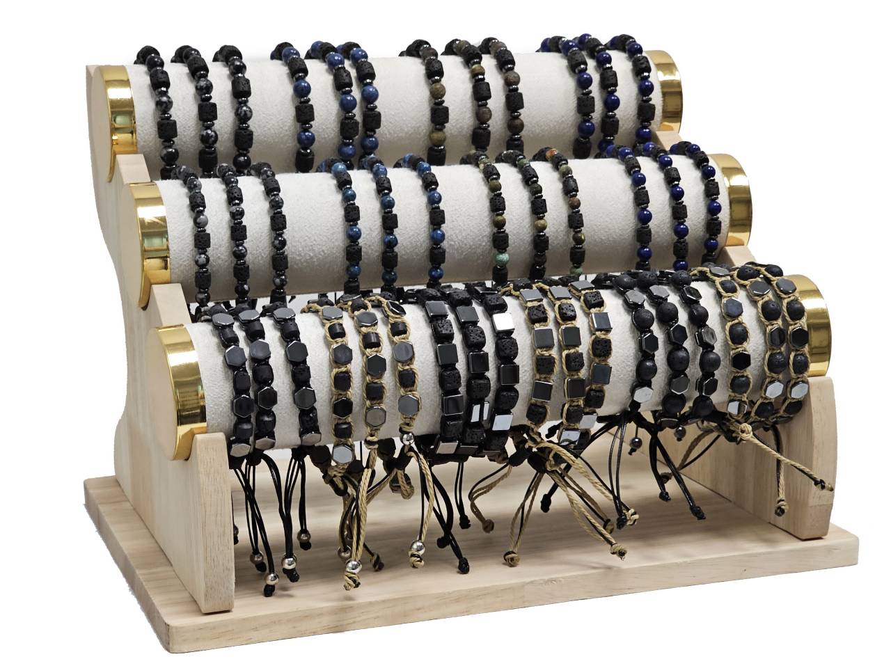 Αντρικό Βραχιόλι Πέτρα μακραμέ, με ημιπολύτιμες πέτρες και στοιχεία από αιματίτη, 14 σχέδια από 6 τεμ. Σταντ(84Τεμ.)