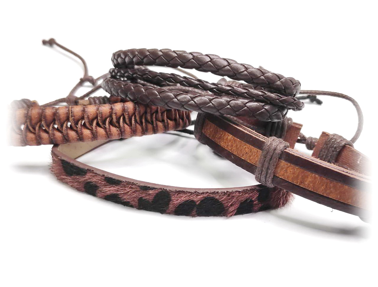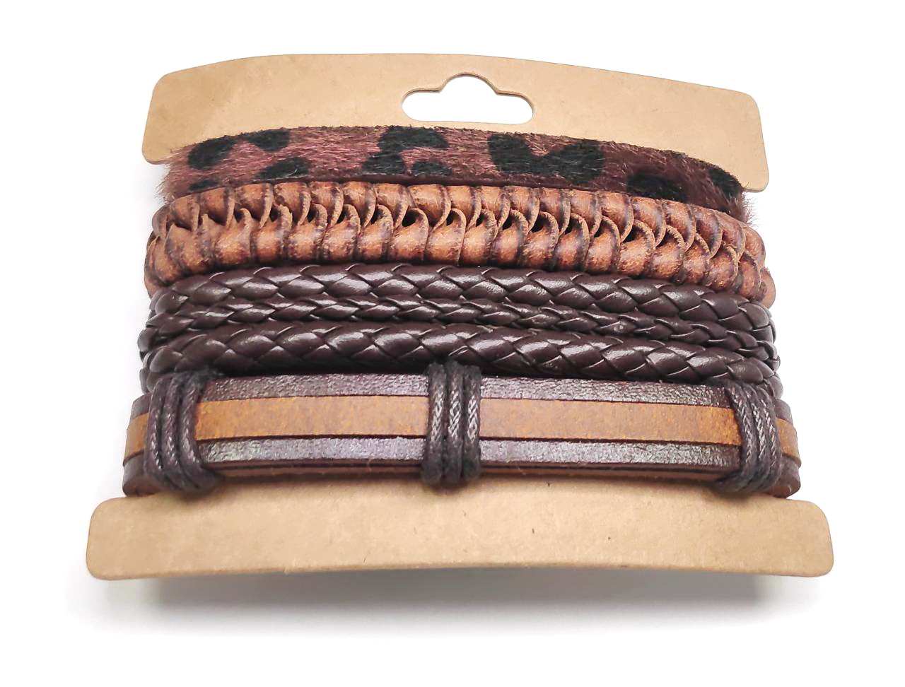 Αντρικό Βραχιόλι Σχοινί και δέρμα PU, σέτ 3 τεμαχίων σε χρώμα Καφέ