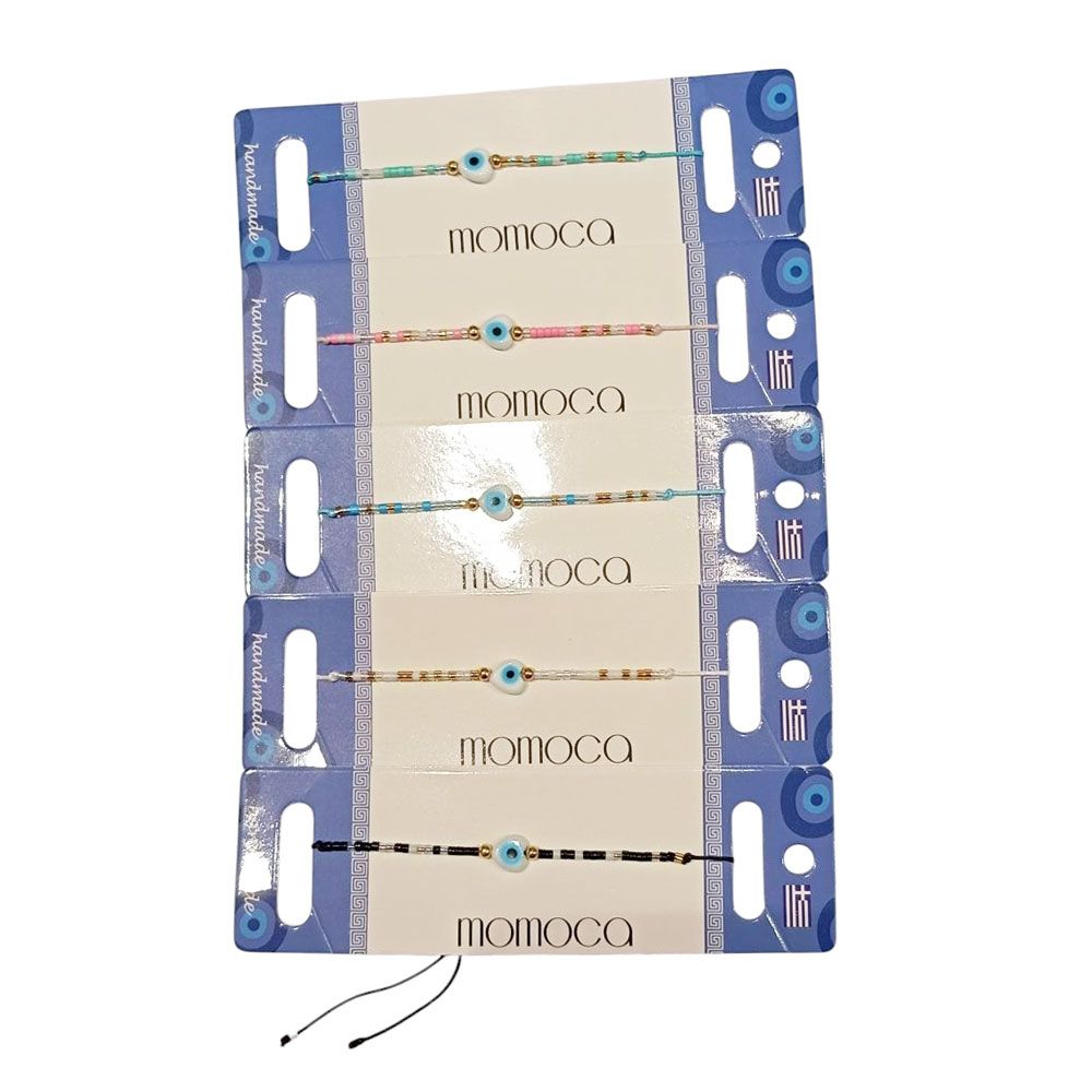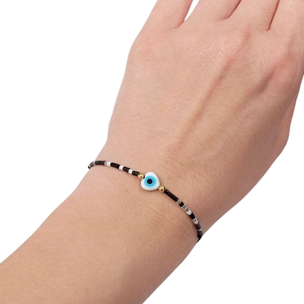 Χειροποίητα βραχιόλια με πολύχρωμες χάντρες και ματάκι σε σχήμα καρδιάς, ιδανικά για καλοκαιρινό στυλ και προστασία από το κακό μάτι. Διαθέτουν ρυθμιζόμενο μακραμέ κλείσιμο για εύκολη εφαρμογή. Το σετ περιλαμβάνει 12 τεμάχια.