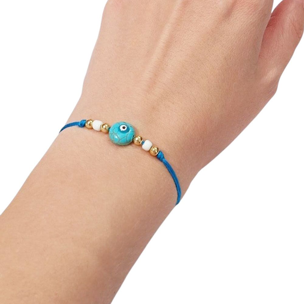 Σετ 12 χειροποίητα βραχιόλια με ματάκι, ιδανικά για προστασία και στυλ. Διαθέτουν ρυθμιζόμενο κορδόνι σε διάφορα χρώματα και μεταλλικές χάντρες σε χρυσό τόνο. Το χαρακτηριστικό γαλάζιο μάτι στο κέντρο αποτελεί διαχρονικό σύμβολο καλής τύχης και αποτροπής της αρνητικής ενέργειας. Φοριούνται εύκολα καθημερινά, μόνα τους ή σε συνδυασμό, και αποτελούν εξαιρετική επιλογή για δώρο ή καλοκαιρινό αναμνηστικό.