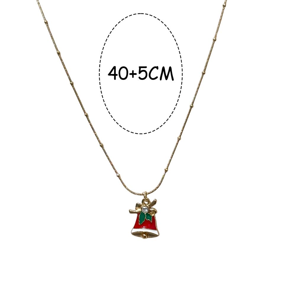 Κομψό ατσάλινο κολιέ με γιορτινό μενταγιόν σε σχέδιο καμπάνας, διακοσμημένο με κόκκινο και πράσινο σμάλτο και λαμπερή χρυσή βάση. Ένα διακριτικό αλλά εντυπωσιακό κόσμημα που θα προσθέσει γιορτινή λάμψη στις εμφανίσεις σας. Κατασκευασμένο από ανοξείδωτο ατσάλι, ανθεκτικό στη χρήση και στο χρόνο. Χαρακτηριστικά: Υλικό: Ανοξείδωτο ατσάλι Σχέδιο: Καμπάνα Χρώμα: Χρυσό με κόκκινες & πράσινες λεπτομέρειες Μήκος: 40 + 5 cm (ρυθμιζόμενο) Ιδανικό για γιορτινές εμφανίσεις ή ως δώρο