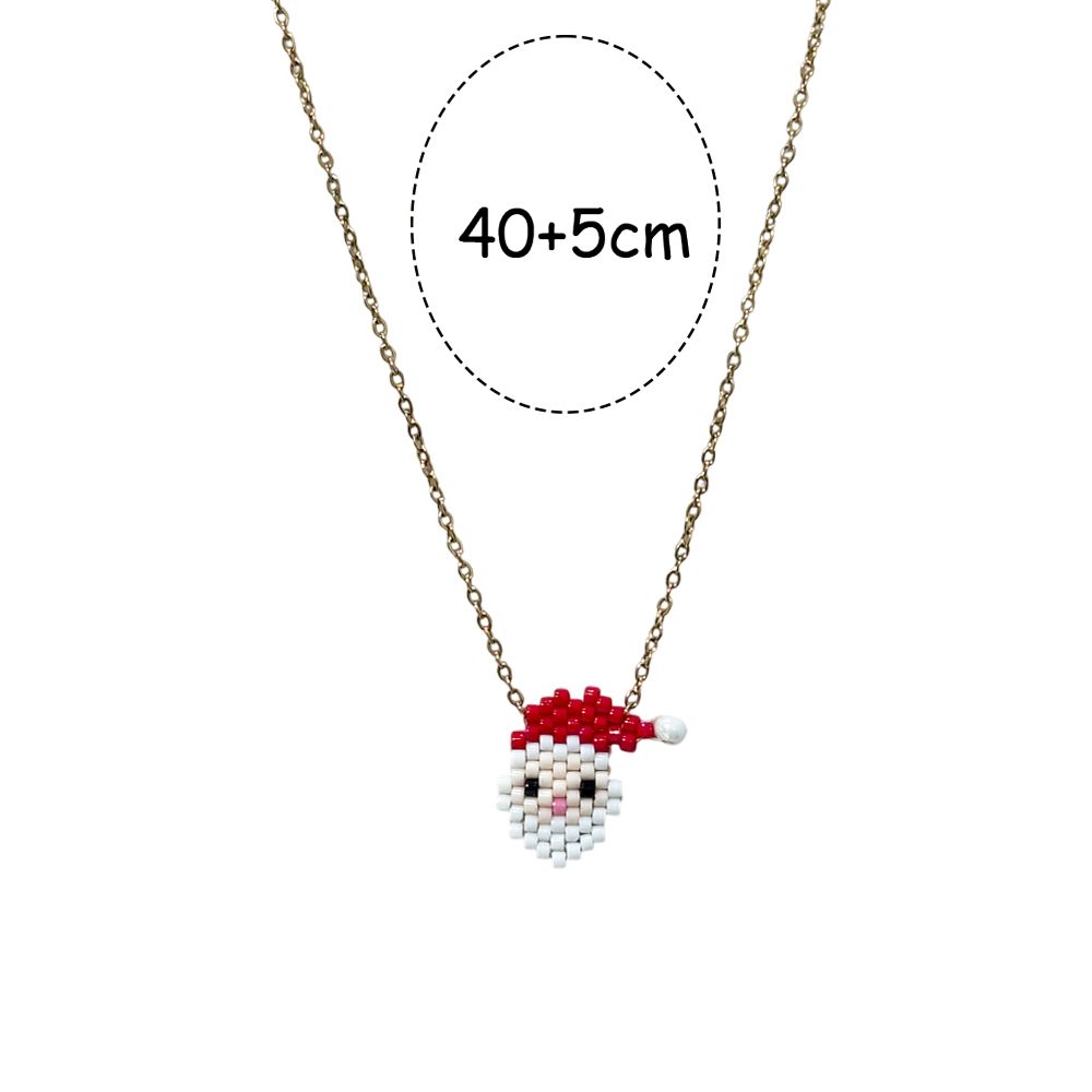 Χειροποίητο ατσάλινο κολιέ με μοτίφ Άγιου Βασίλη από χάντρες Miyuki. Ένα λαμπερό και χαρούμενο αξεσουάρ που αποπνέει γιορτινή διάθεση και προσθέτει μια παιχνιδιάρικη πινελιά στις εμφανίσεις σου. Ιδανικό για τα Χριστούγεννα ή ως δώρο σε αγαπημένα πρόσωπα. Υλικό: Ανοξείδωτο ατσάλι & χάντρες Miyuki Μήκος: 40 + 5 cm Δεν μαυρίζει, δεν προκαλεί αλλεργίες Ελαφρύ και ανθεκτικό Ιδανικό για τις γιορτινές εμφανίσεις