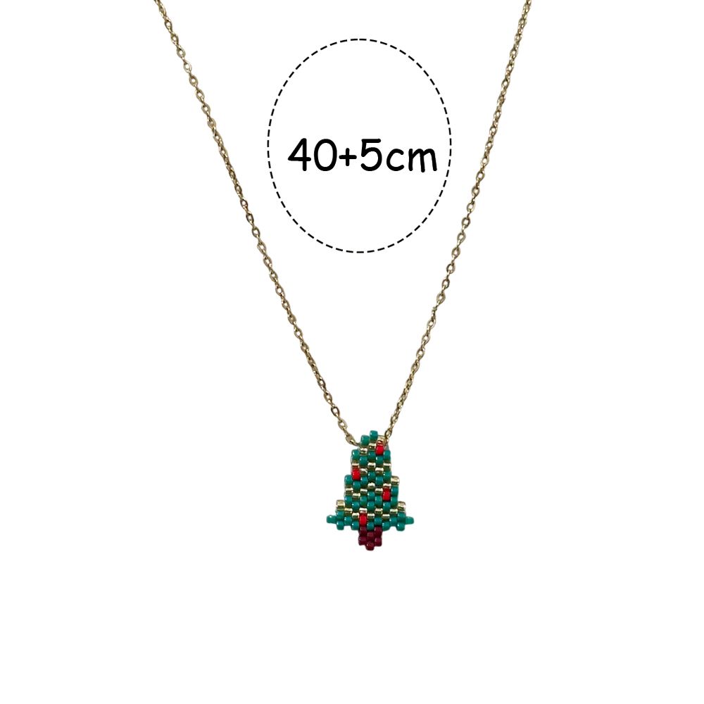 Λαμπερό ατσάλινο κολιέ με χειροποίητο μοτίφ χριστουγεννιάτικου δέντρου από χάντρες Miyuki. Μια χαριτωμένη και γιορτινή πινελιά που θα αναδείξει το στυλ σου στις γιορτινές εμφανίσεις! Ιδανικό και ως δώρο για τα Χριστούγεννα. Υλικό: Ανοξείδωτο ατσάλι & χάντρες Miyuki Μήκος: 40 + 5 cm Δεν μαυρίζει, δεν προκαλεί αλλεργίες Ανθεκτικό και ελαφρύ Ιδανικό για τη γιορτινή περίοδο