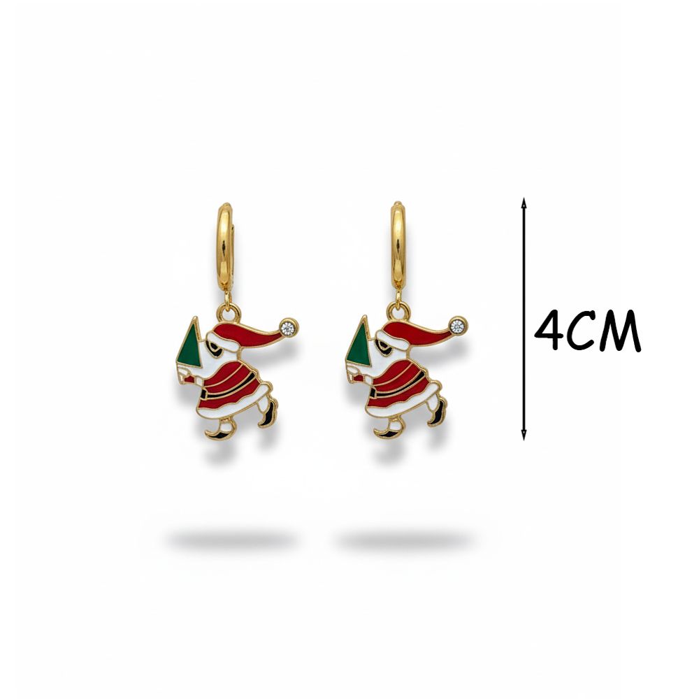 Γιορτινά ατσάλινα σκουλαρίκια με χαριτωμένο σχέδιο Άγιου Βασίλη, ιδανικά για να γεμίσουν τις χριστουγεννιάτικες εμφανίσεις σας με χαρά και στυλ! Διακοσμημένα με κόκκινο, πράσινο και λευκό σμάλτο και λαμπερή χρυσή βάση. Κατασκευασμένα από ανθεκτικό ανοξείδωτο ατσάλι, ελαφριά και άνετα για καθημερινή χρήση. Μια παιχνιδιάρικη πινελιά για τις γιορτές ή ένα υπέροχο δώρο για τα αγαπημένα σας πρόσωπα. Χαρακτηριστικά: Υλικό: Ανοξείδωτο ατσάλι Σχέδιο: Άγιος Βασίλης Χρώμα: Χρυσό με κόκκινες, πράσινες & λευκές λεπτομέρειες Ελαφριά και ανθεκτικά Ιδανικά για γιορτινές εμφανίσεις