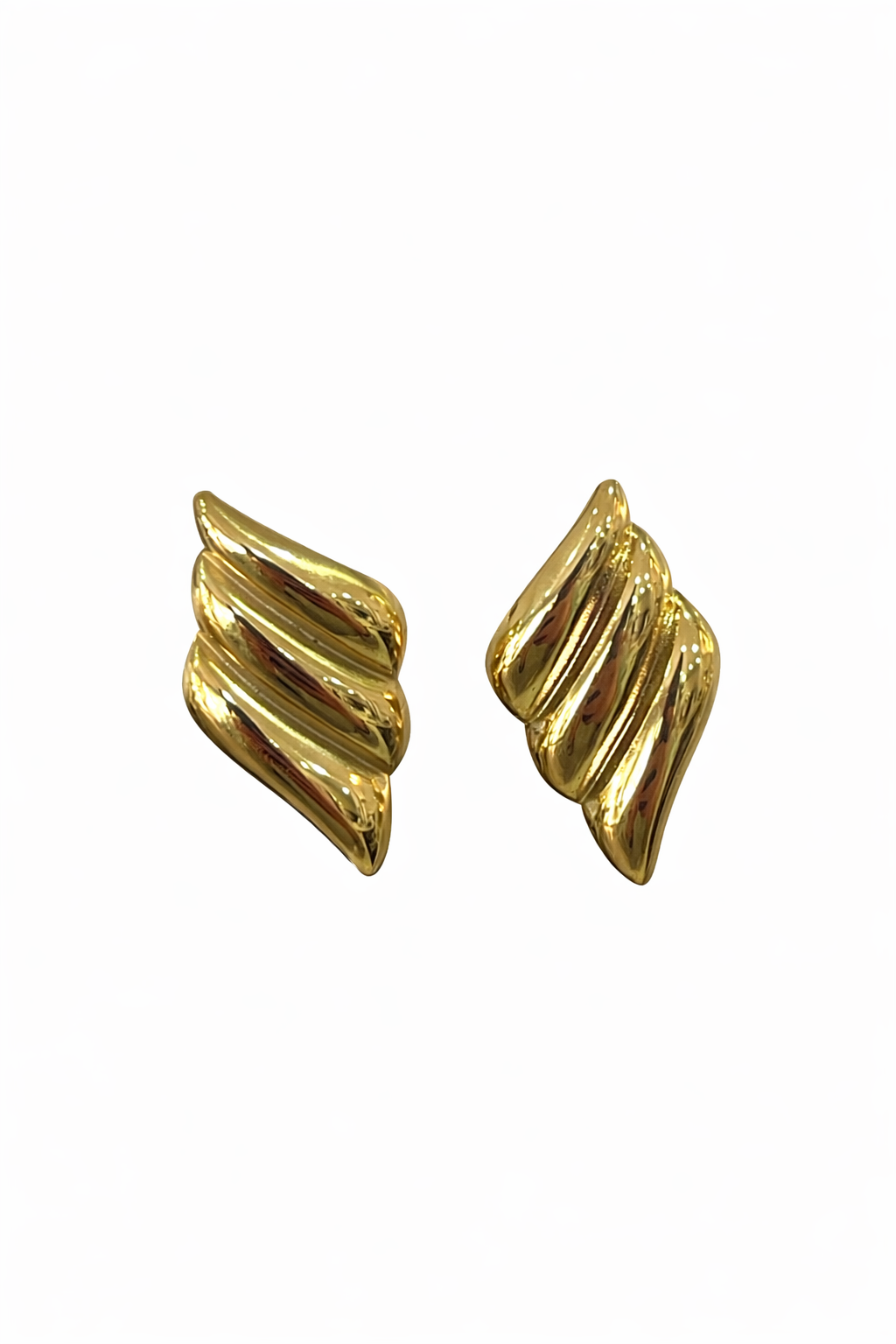 Εντυπωσιακά χρυσά σκουλαρίκια με ανάγλυφο, κυματιστό σχέδιο για δυναμικές εμφανίσεις.