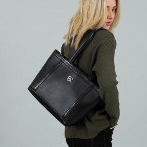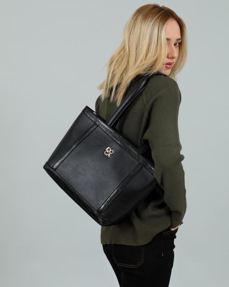 Μαύρη τσάντα ωμου Doca με χρυσές λεπτομέρειες.