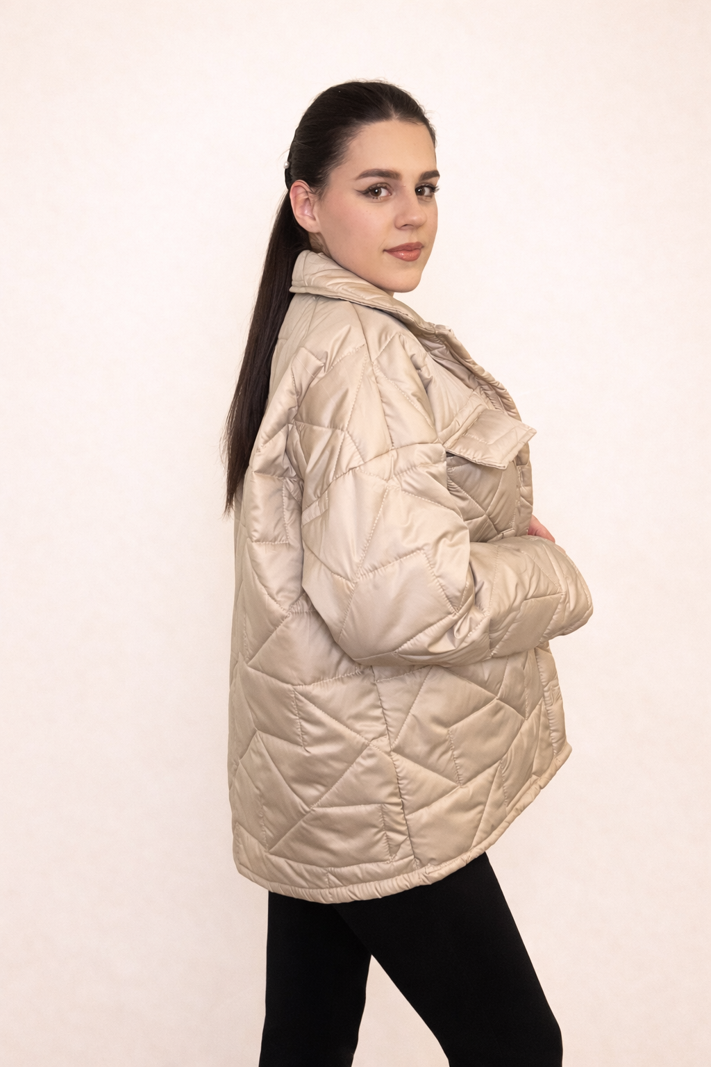 Μπεζ καπιτονέ μπουφάν one size, ελαφρύ αλλα παράλληλα ζεστό. Ιδανικό για την άνοιξη.
