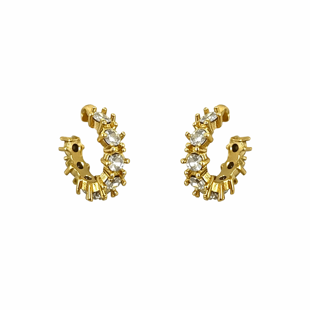 Λαμπεροί χρυσοί κρίκοι με στρας που χαρίζουν κομψότητα και διακριτική πολυτέλεια σε κάθε εμφάνιση.