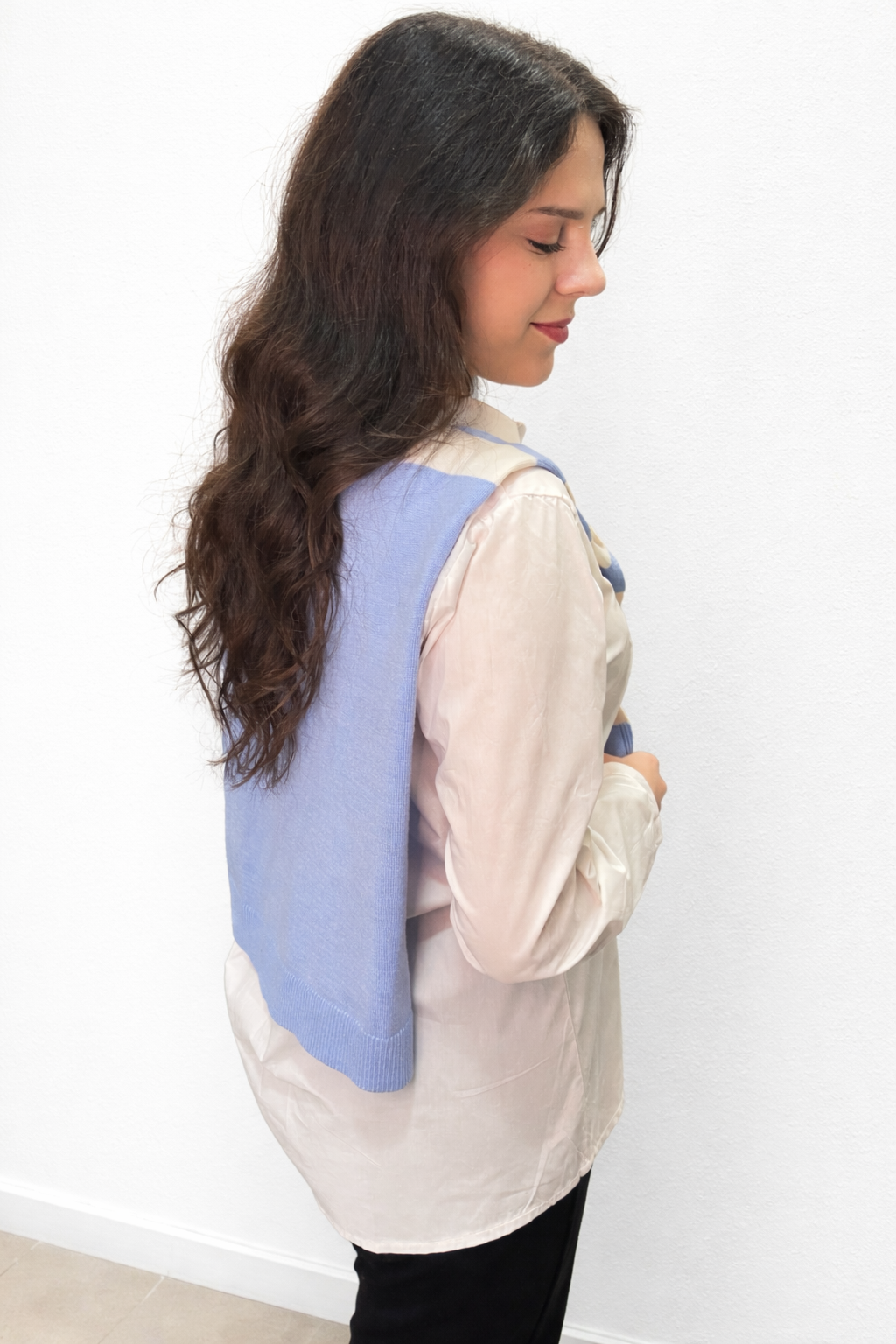 Κλασικό λευκό πουκάμισο με μοντέρνα πινελιά από διακοσμητικό ριγέ πλεκτό, ιδανικό για smart casual εμφανίσεις.