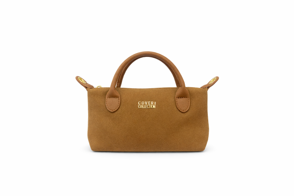 Κομψή suede τσάντα χειρός με minimal σχεδιασμό, ιδανική για καθημερινές και chic εμφανίσεις.