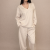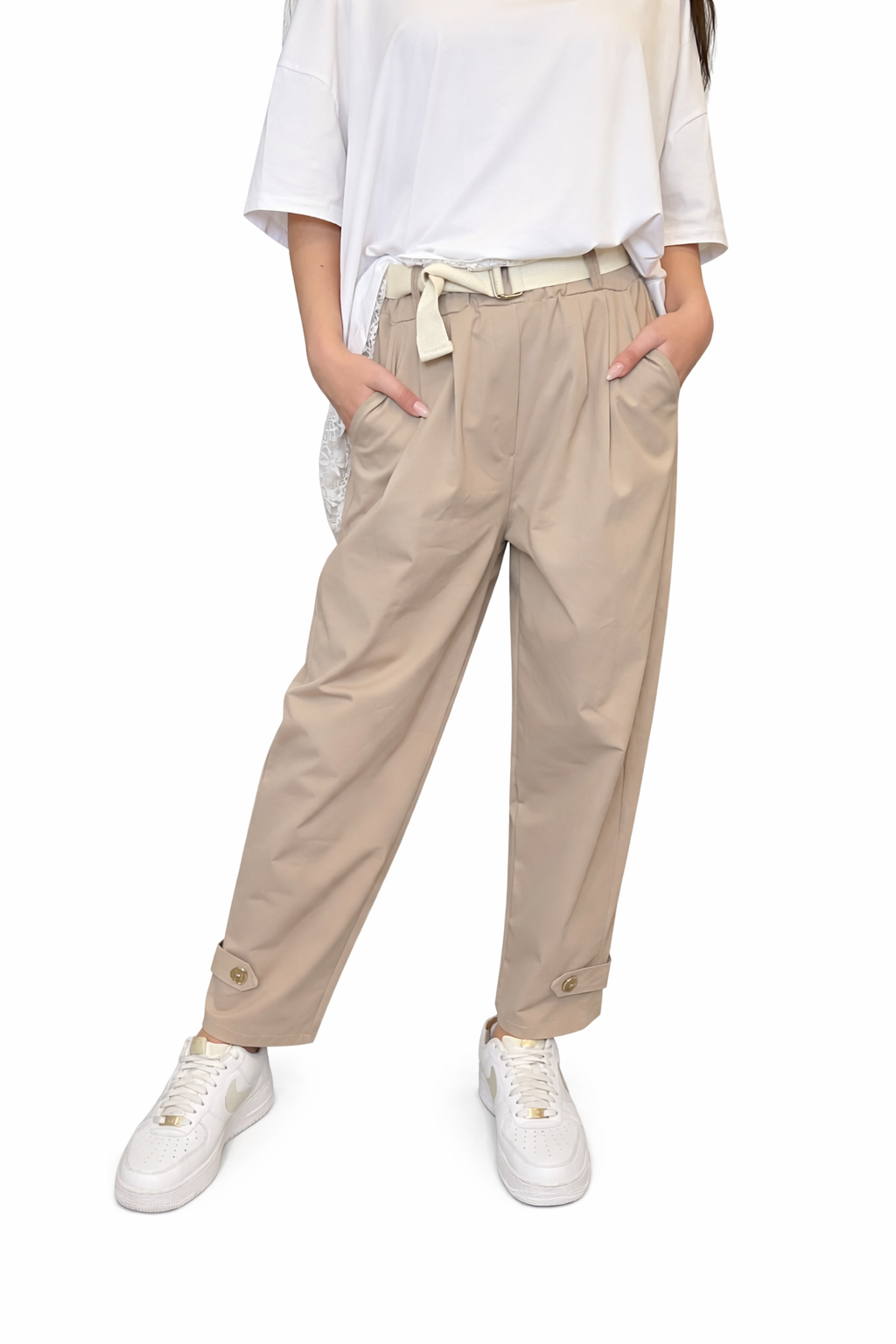 One size μπεζ παντελόνι με πιέτες και σχέδιο με κουμπί στο κάτω μέρος. Πολύ άνετη γραμμή με ανάλαφρο ύφασμα.