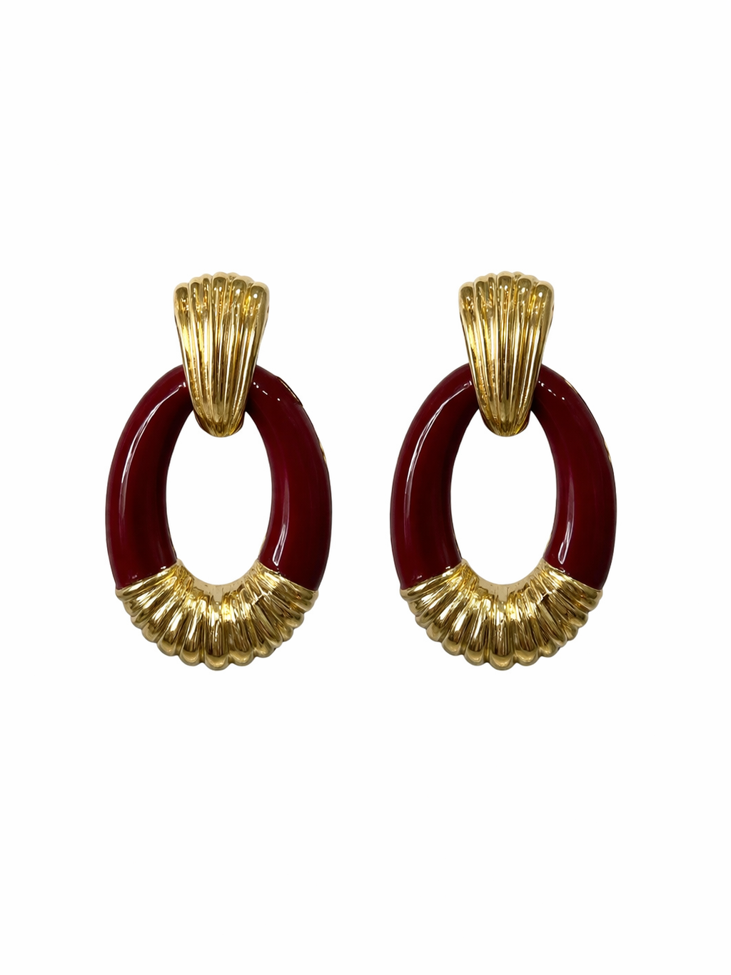 Εντυπωσιακά σκουλαρίκια κρίκοι με κόκκινες και χρυσές λεπτομέρειες για κομψά statement looks.