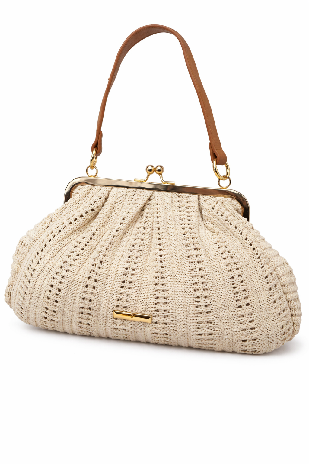 Κομψή πλεκτή τσάντα σε φυσική μπεζ απόχρωση με vintage αισθητική.
