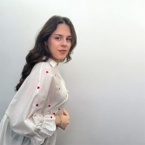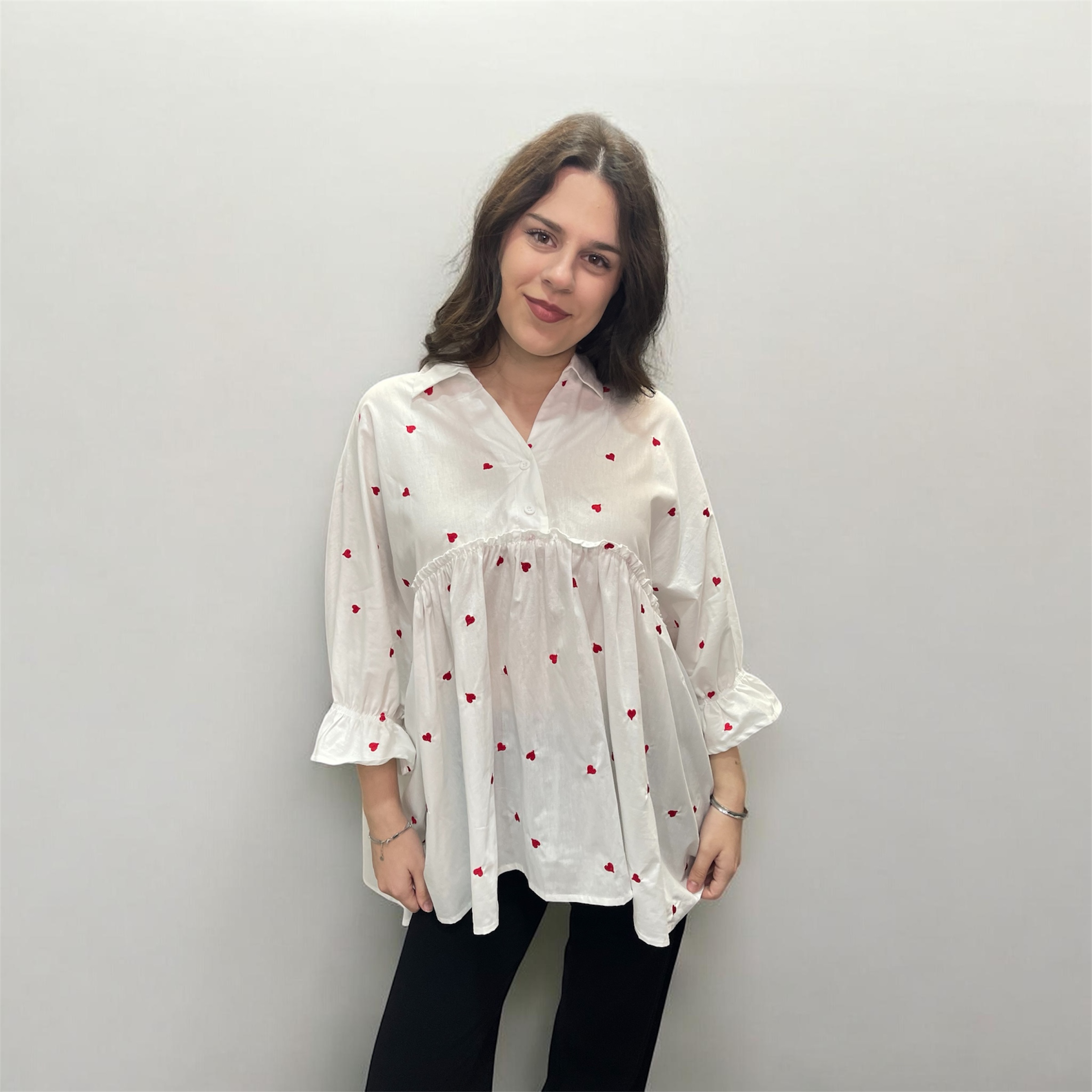 Ανάλαφρο πουκάμισο από 100% βαμβάκι με κεντημένες καρδιές και ρομαντική γραμμή.