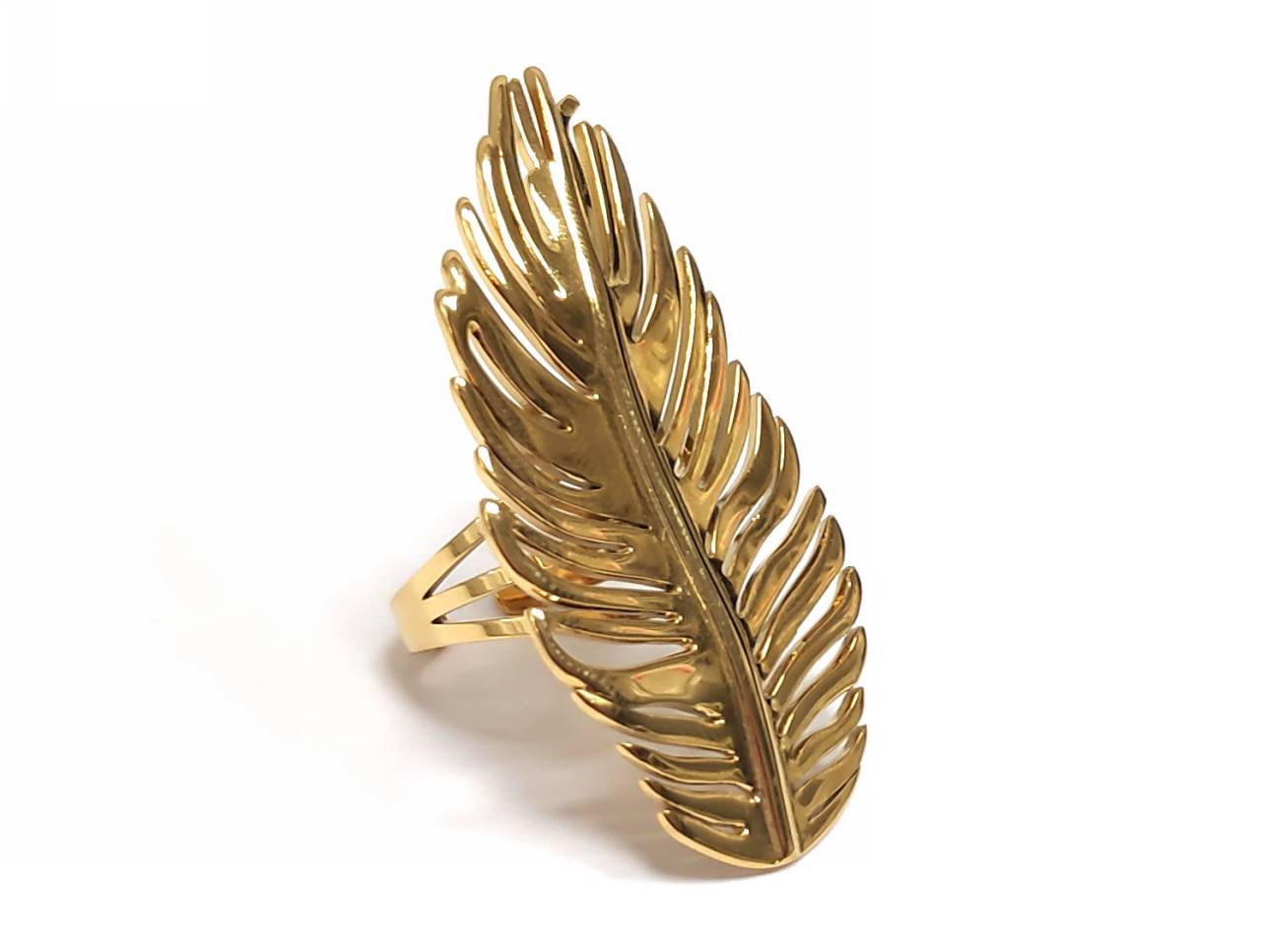 Δαχτυλίδι Ατσάλι 316L, με φύλλο σε χρώμα Χρυσαφί