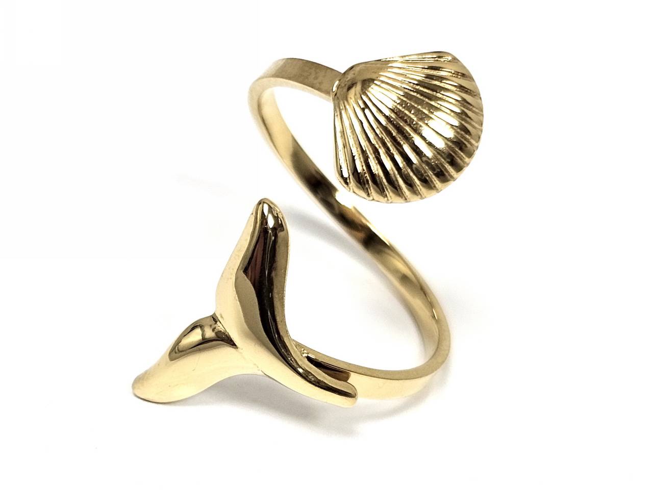 Δαχτυλίδι Ατσάλι 316L, με κοχυλι σε χρώμα Χρυσαφί