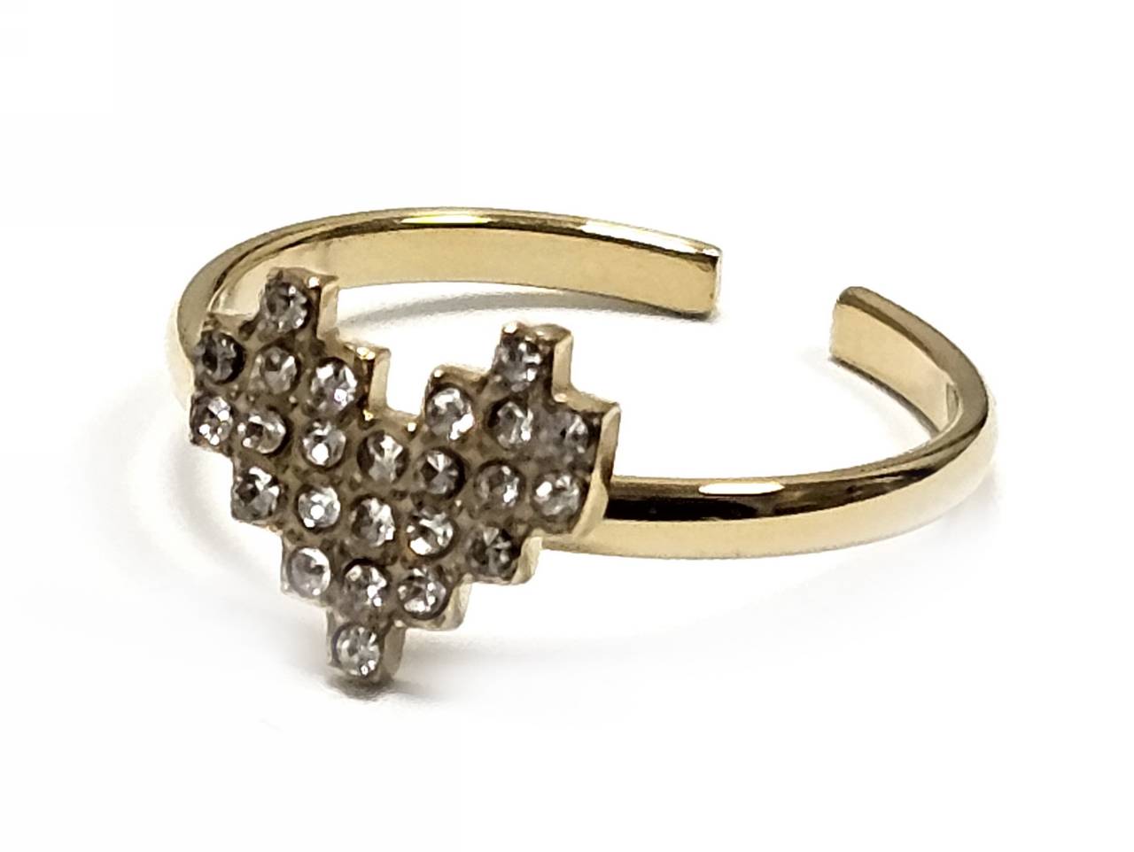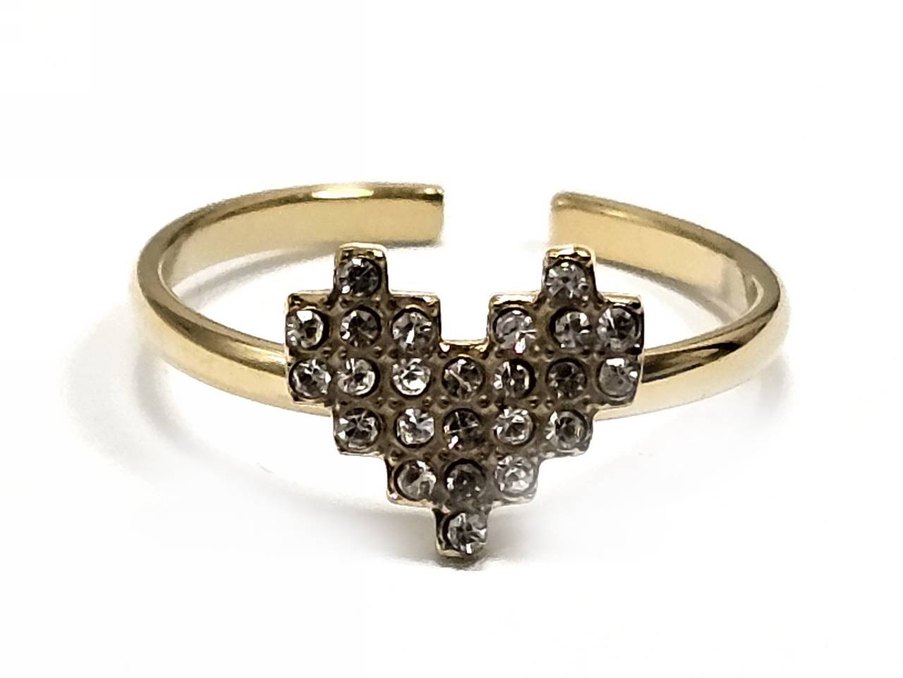 Δαχτυλίδι Ατσάλι 316L, καρδιά με στρας σε χρώμα Χρυσαφί
