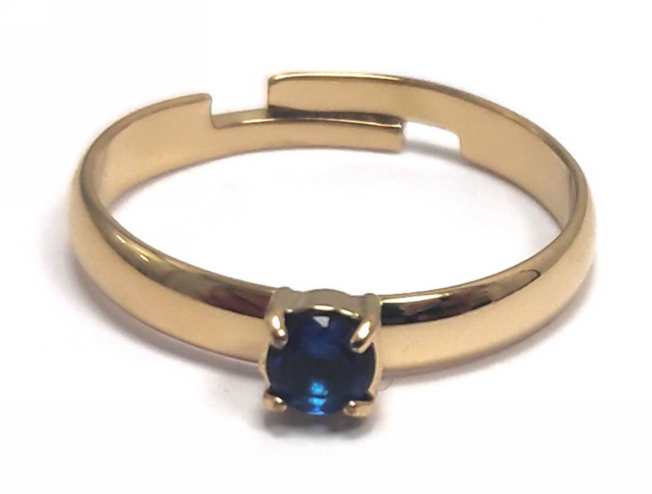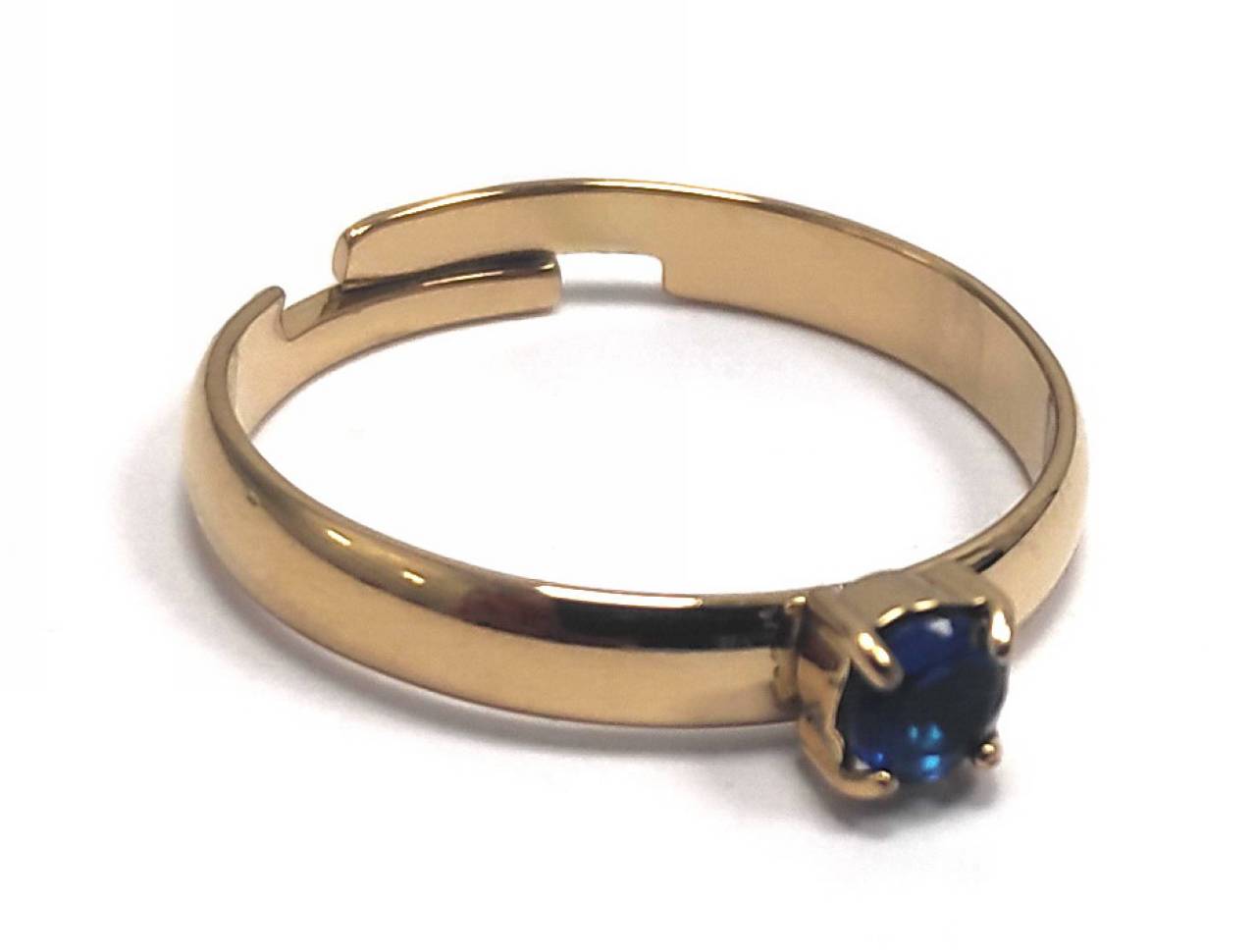Δαχτυλίδι Ατσάλι 316L, με μπλέ κρυσταλλάκι σε χρώμα Χρυσαφί