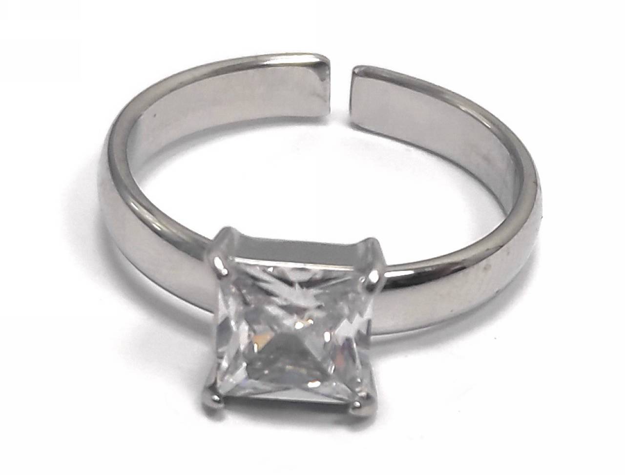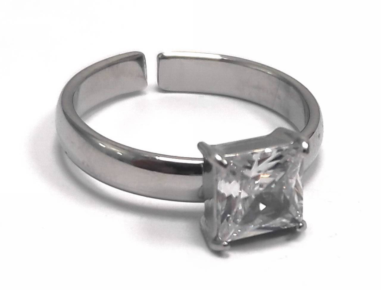 Δαχτυλίδι Ατσάλι 316L, με λευκό κρυσταλλάκι σε χρώμα Ασημί