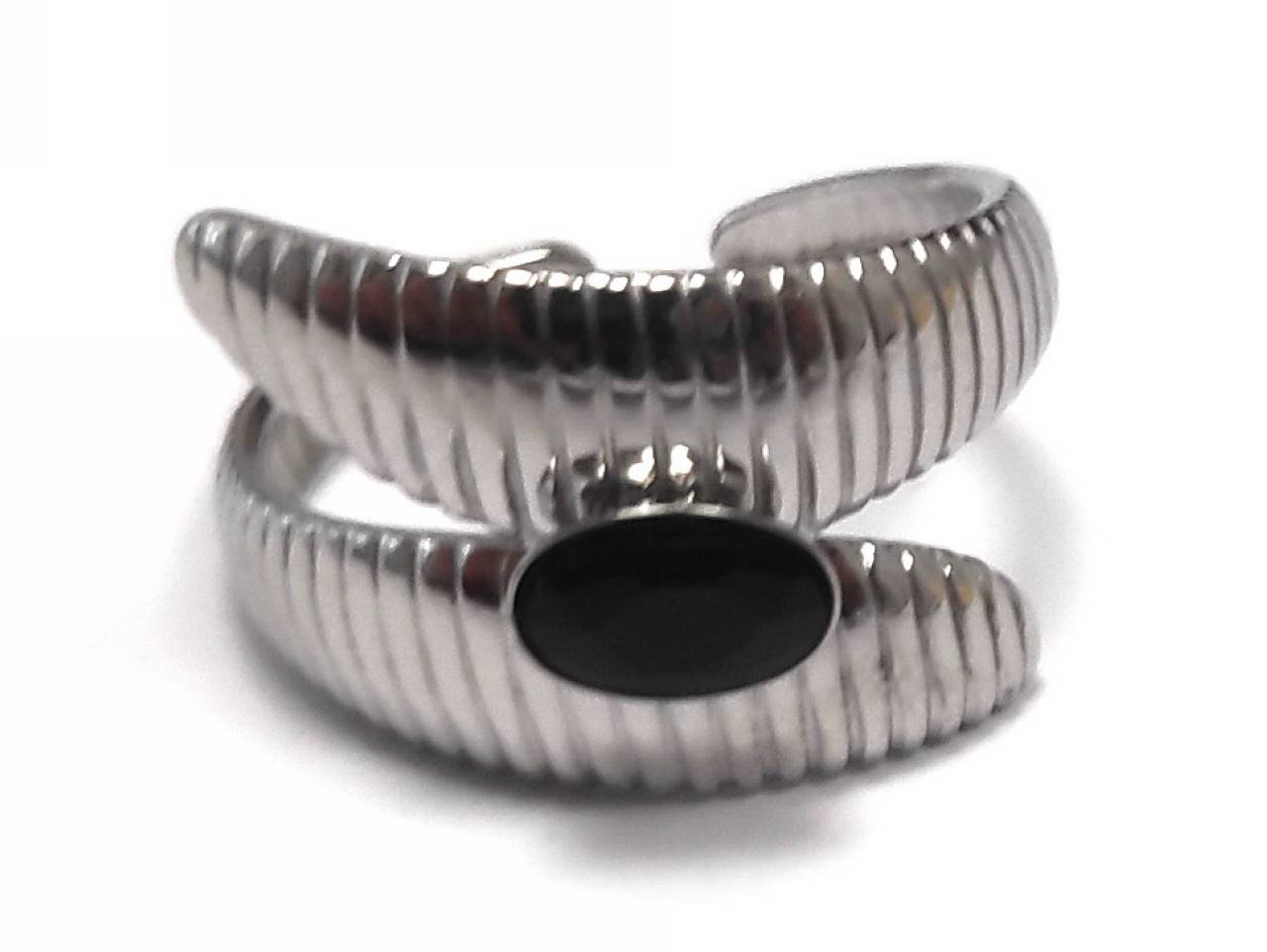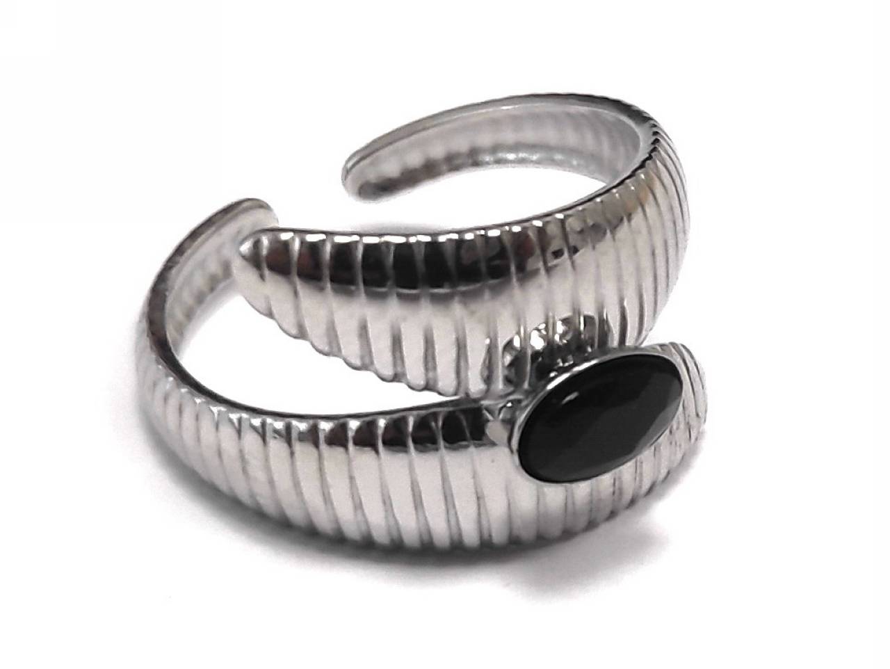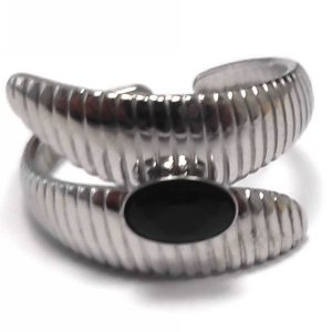 Δαχτυλίδι Ατσάλι 316L, με μαύρο κρυσταλλάκι σε χρώμα Ασημί